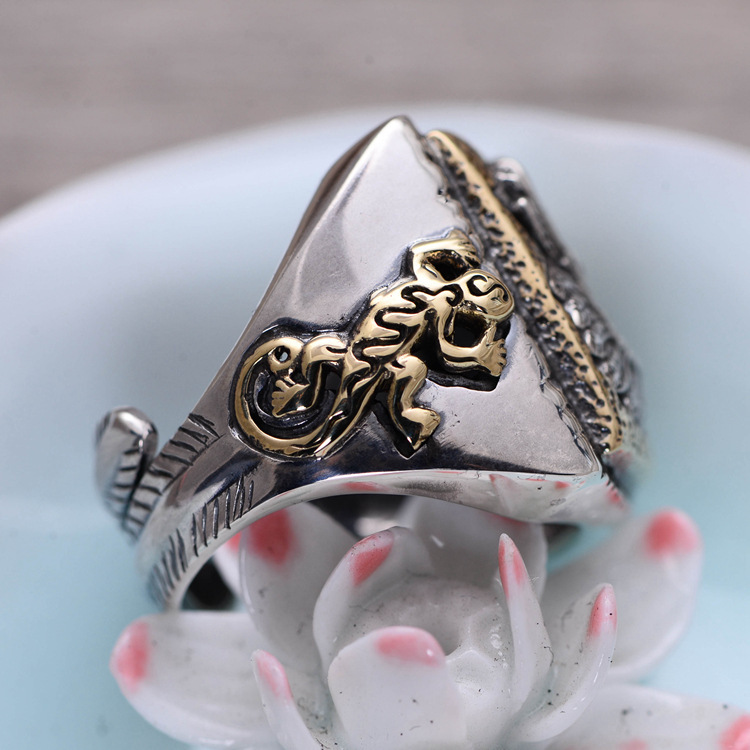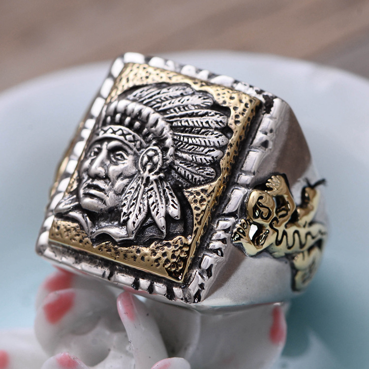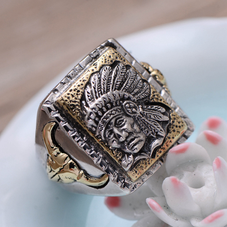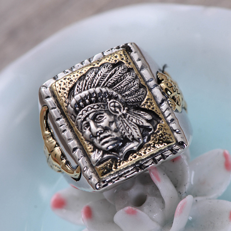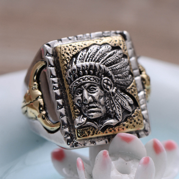 S925 Sterling Silver Jewelry Indian Chief Men's Open Ring