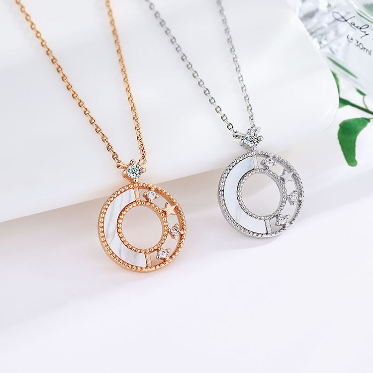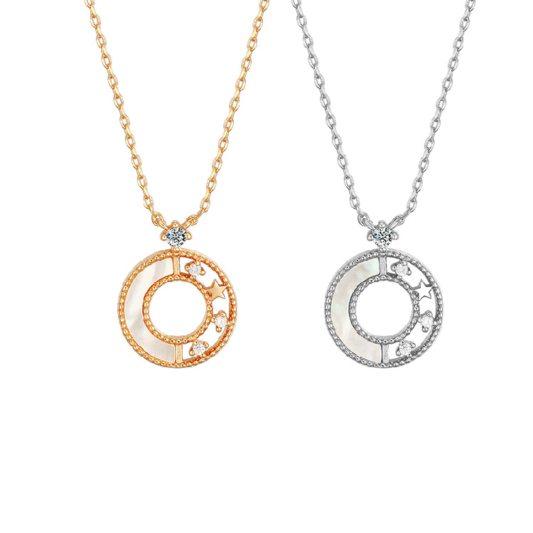 Color: rose gold and white shell ring necklace, white gold and white shell ring necklace