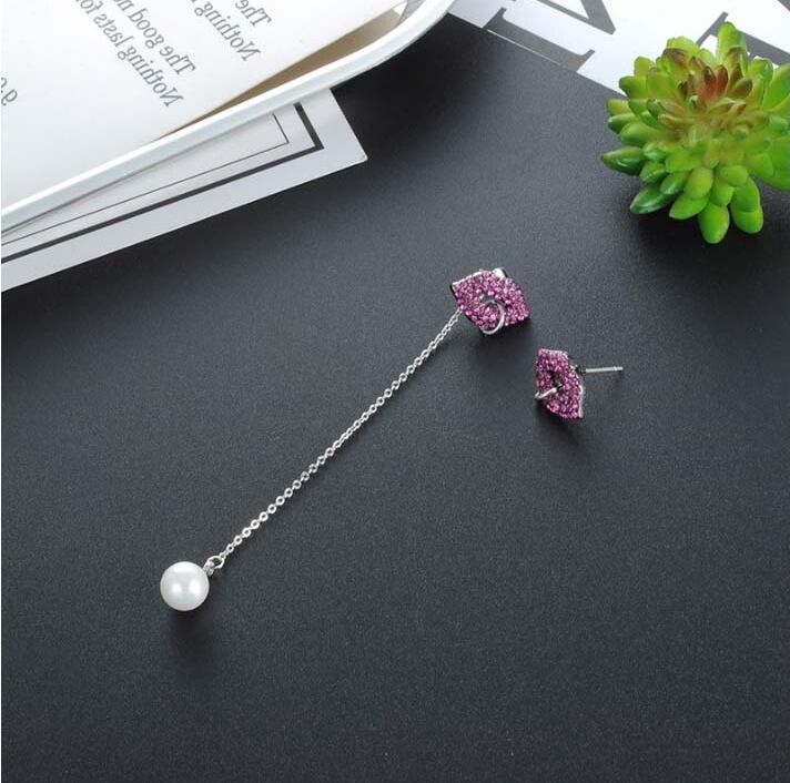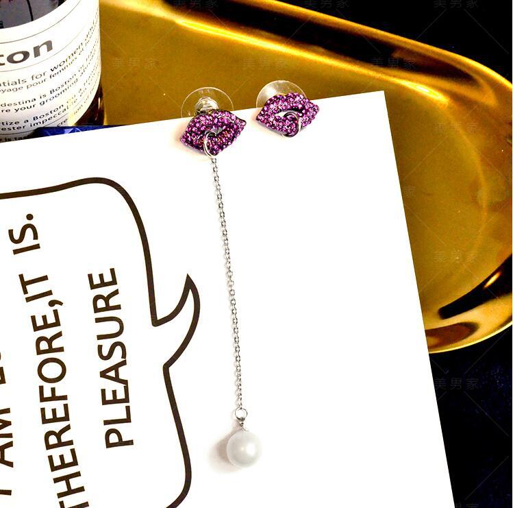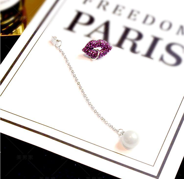 Material: 925 silver + high quality alloy diamondSpecifications: ear cord length 8cm, pearl diameter 0.7cm, red lip size 0.9*1.5cm