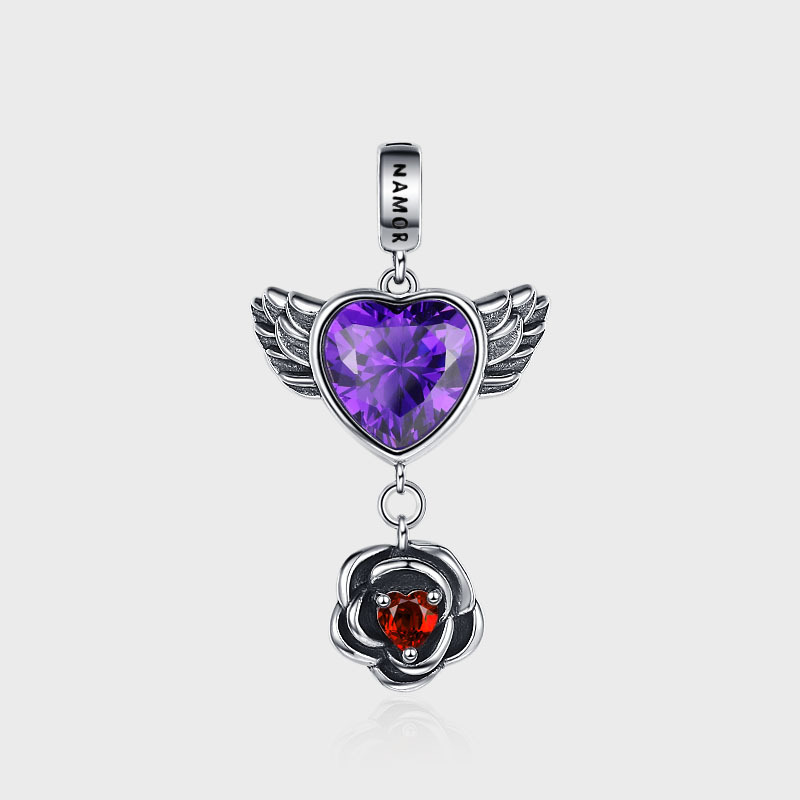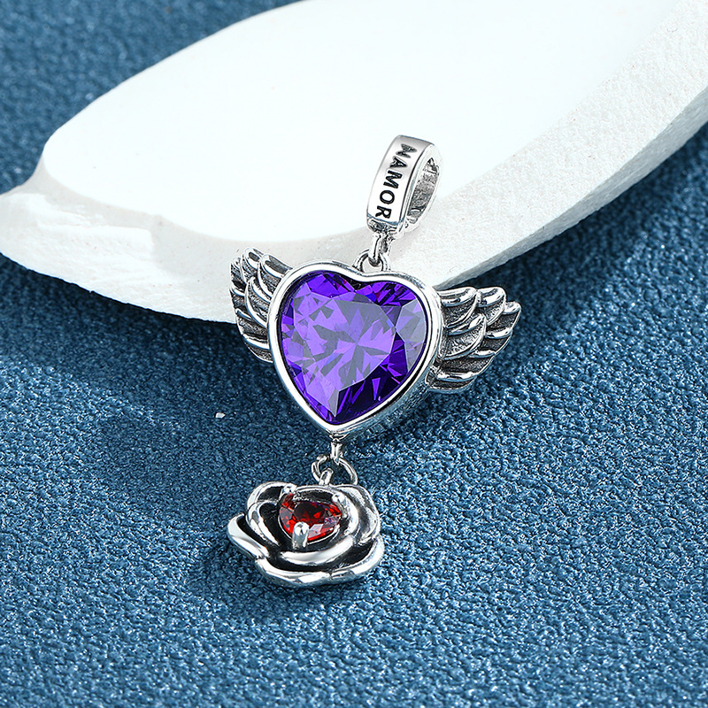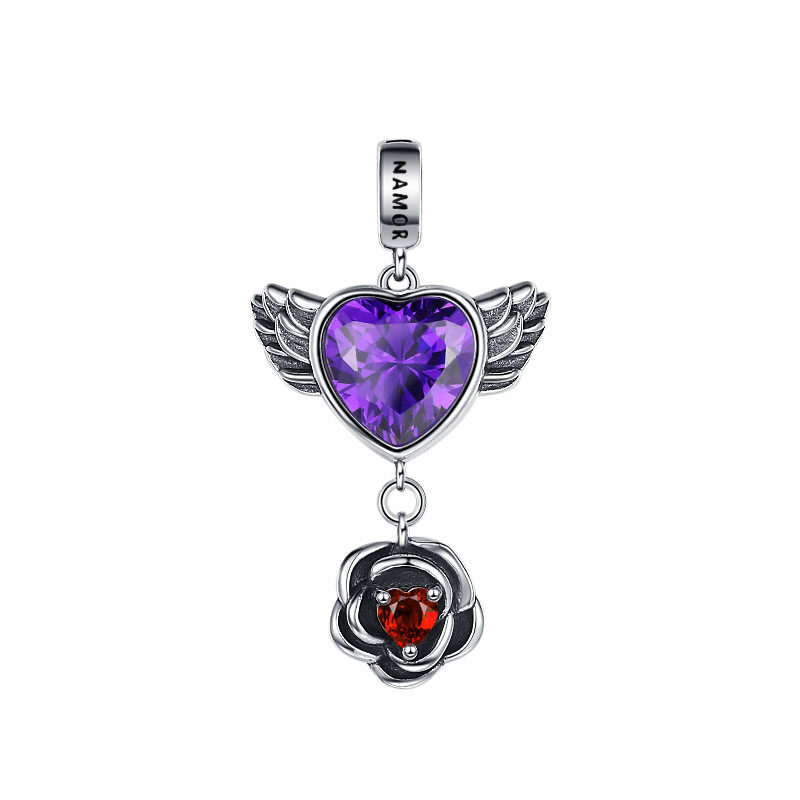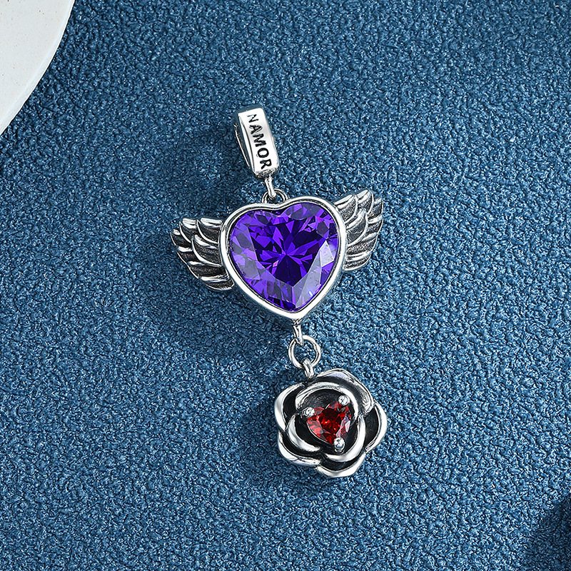 S925 Sterling Silver Love Wings Rose Pendant Female Vintage Thai Silver