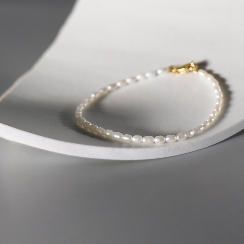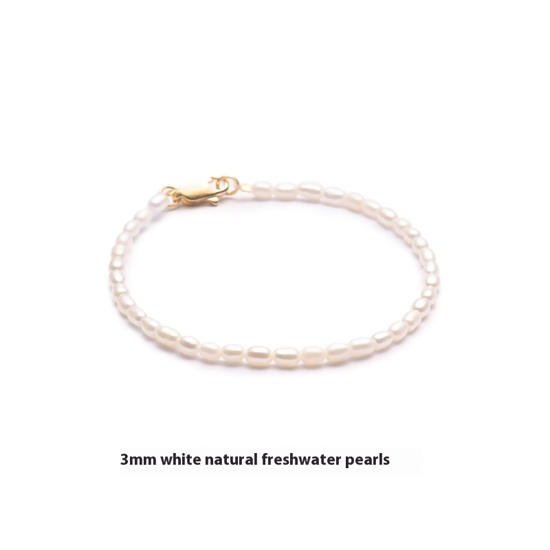S925 Sterling Silver Natural Freshwater Small Pearl Bracelet Niche Beaded