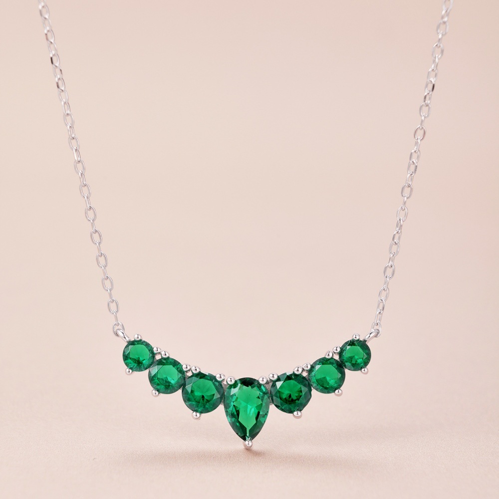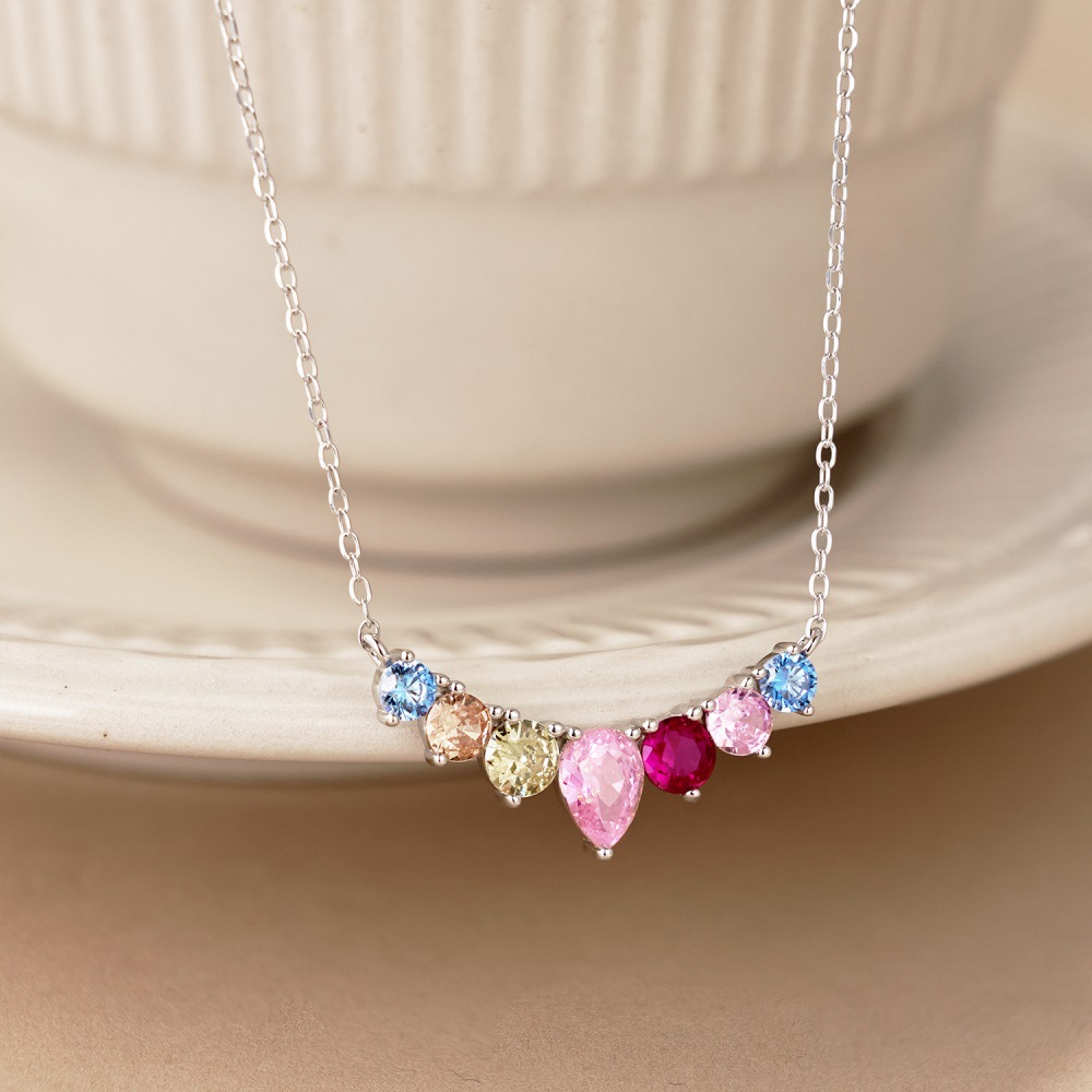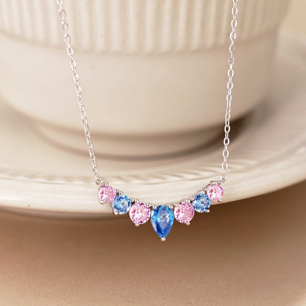 S925 Sterling Silver Necklace Women's Colorful Round Water Drop Pear-shaped Zircon