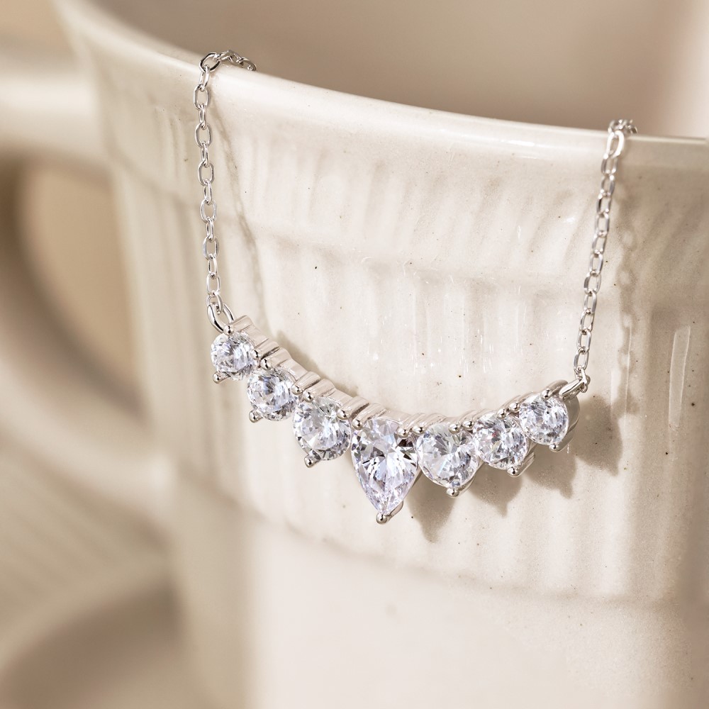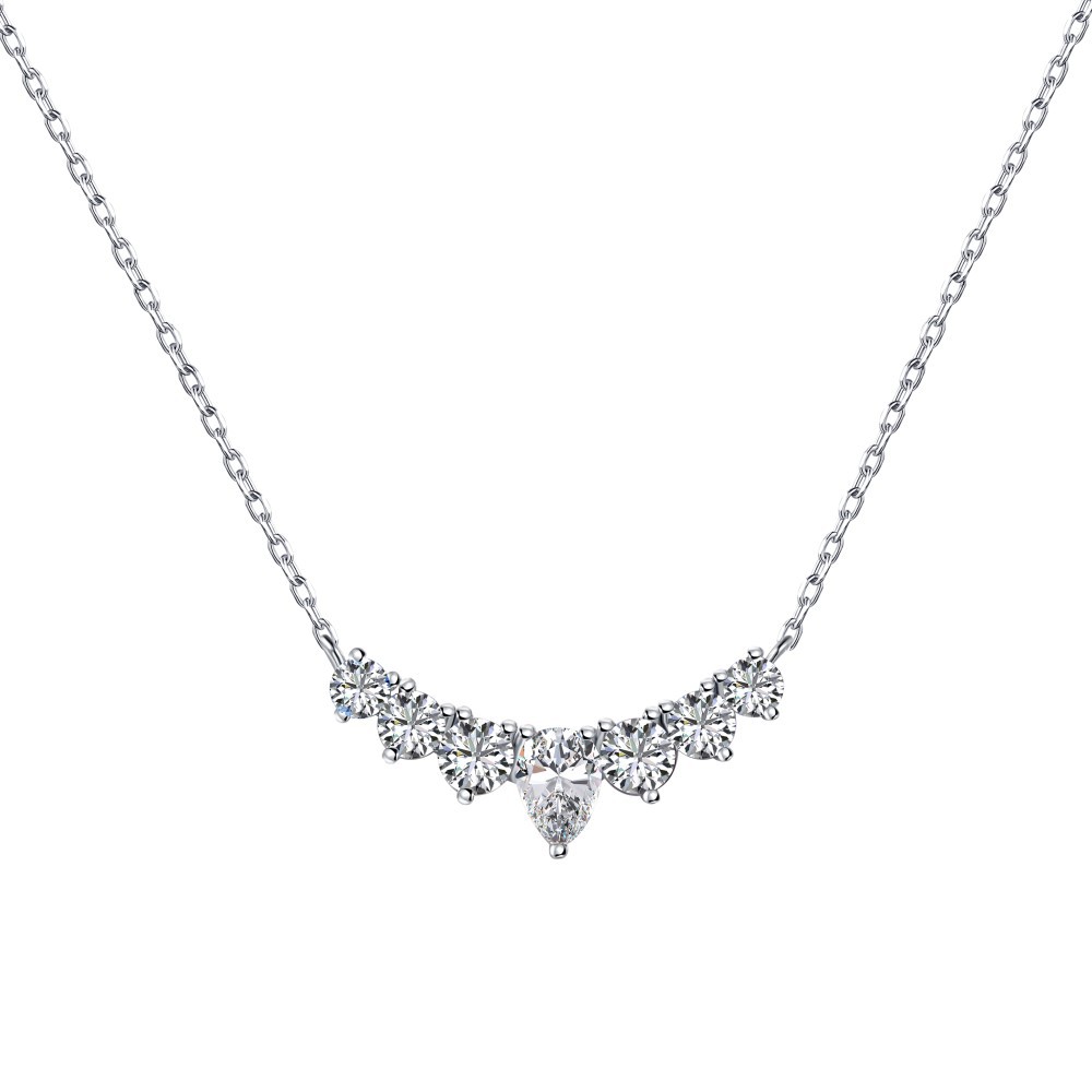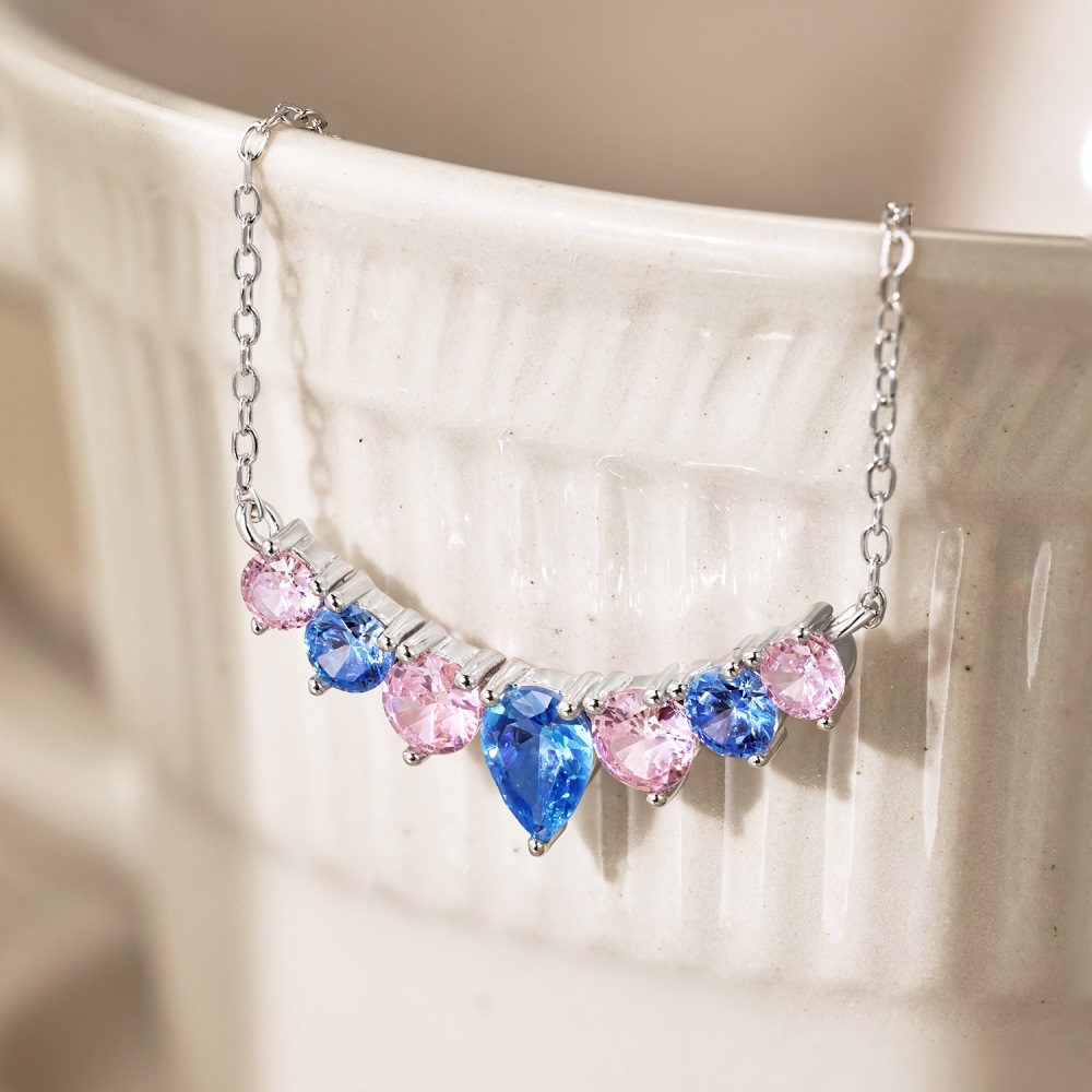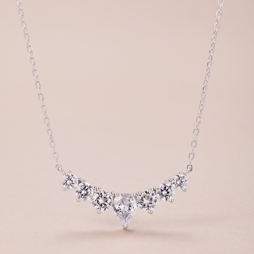 S925 Sterling Silver Necklace Women's Colorful Round Water Drop Pear-shaped Zircon