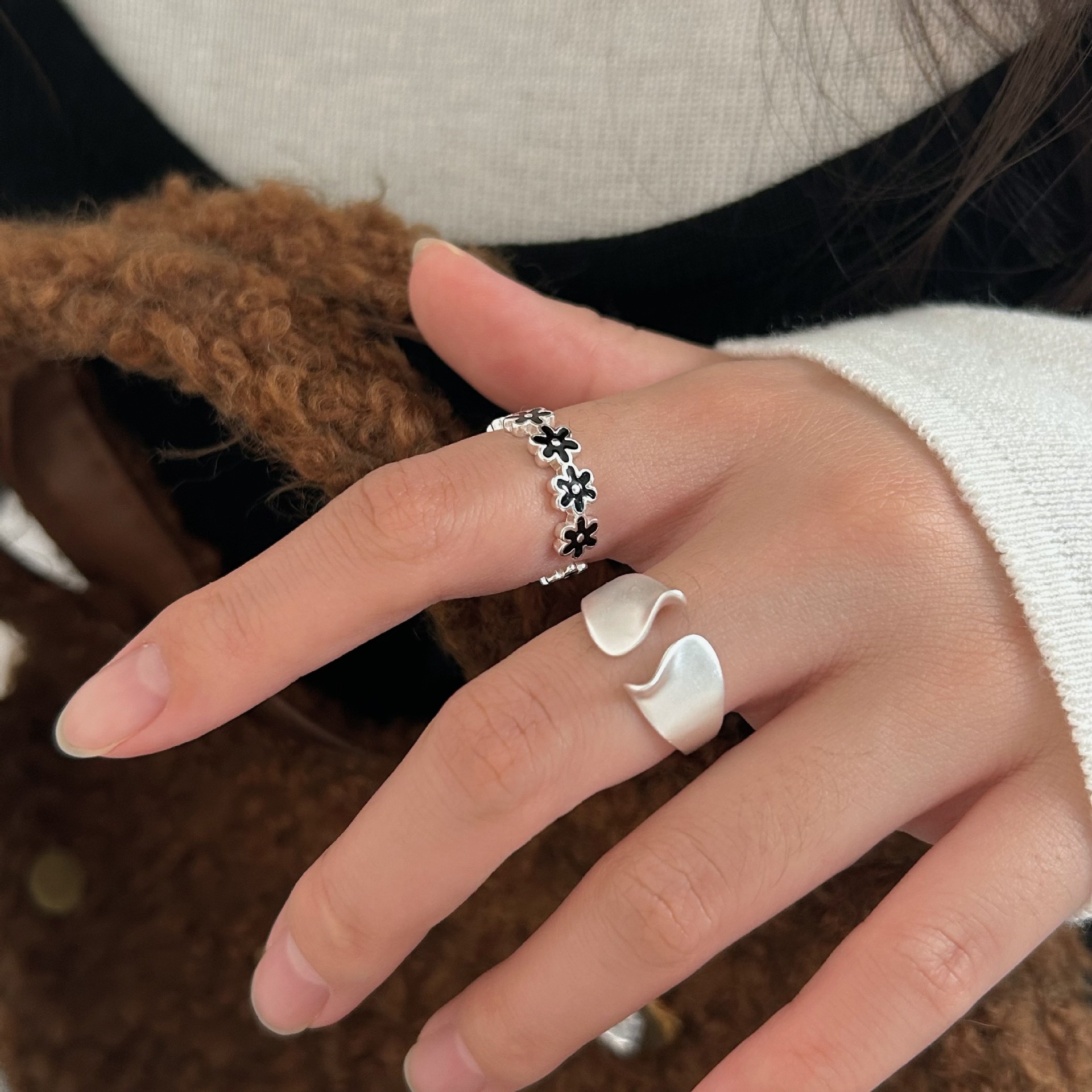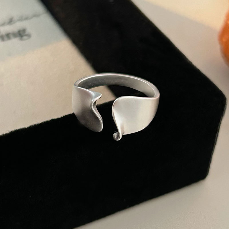 S925 Sterling Silver Niche Black Flower Ring For Women, Cool Tone Frosted Irregular Design, Delicate & Versatile Minimalist Index Finger Ring