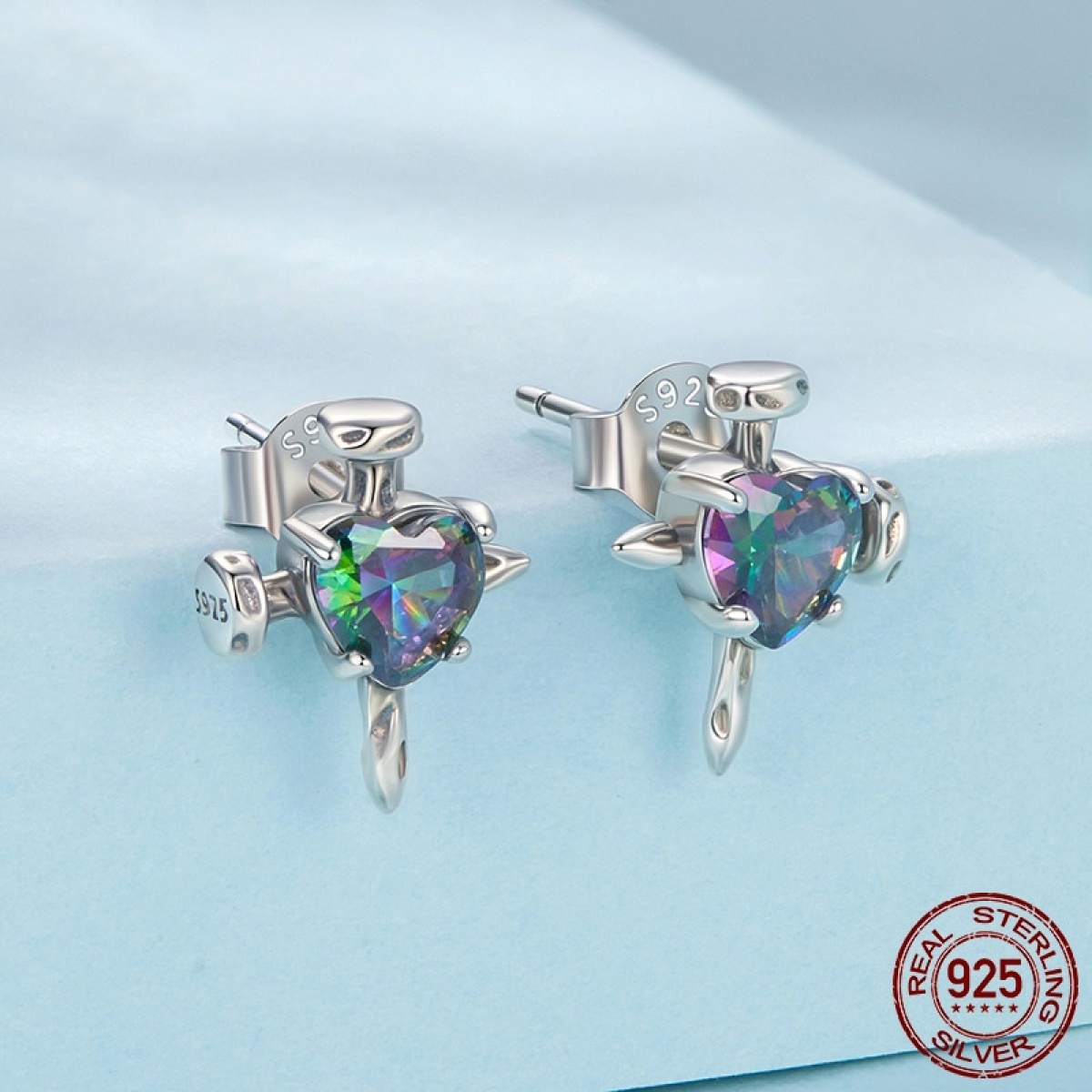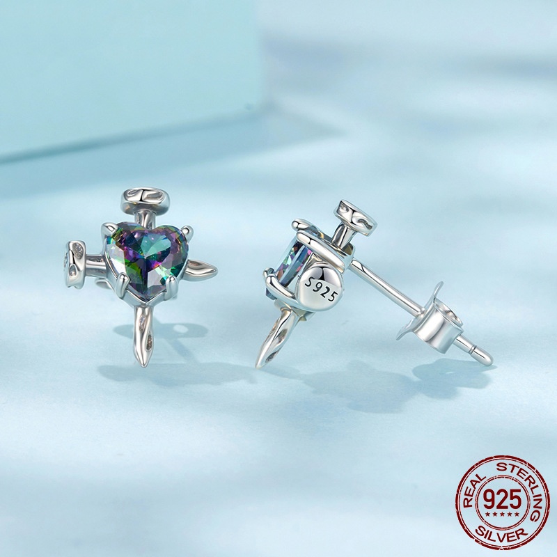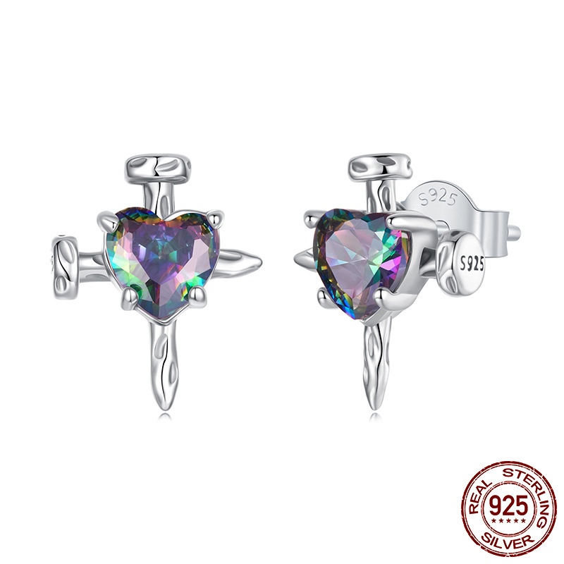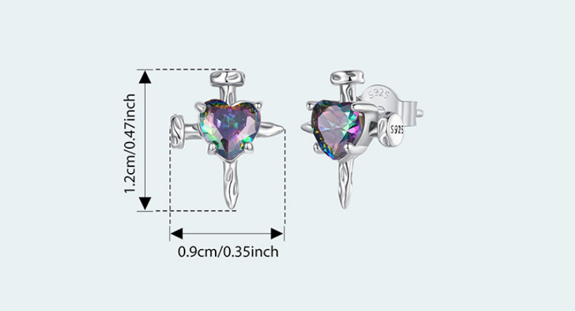 S925 Sterling Silver Retro Heart Cross Stud Earrings
