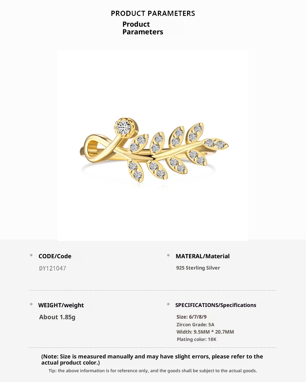 Color: gold DY121047-S-G-WH, White Gold color DY121047-S-W-WH