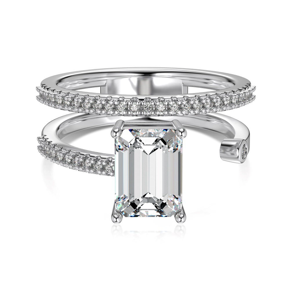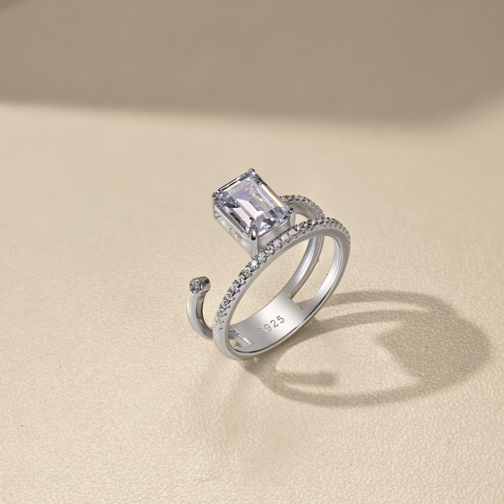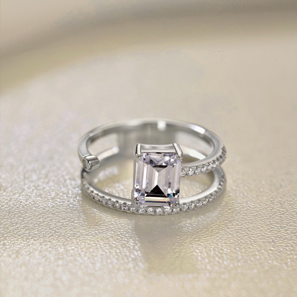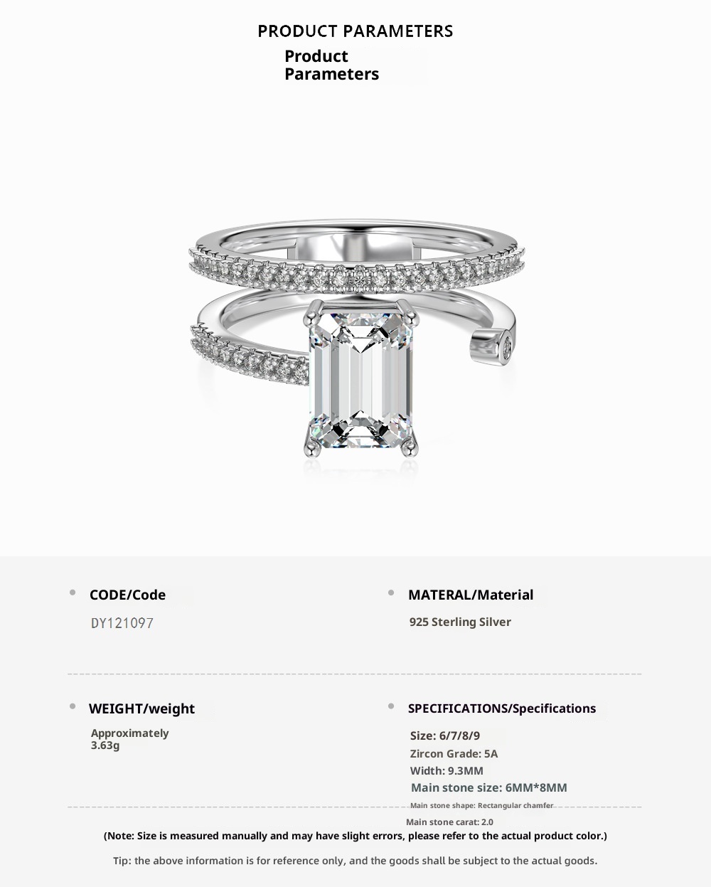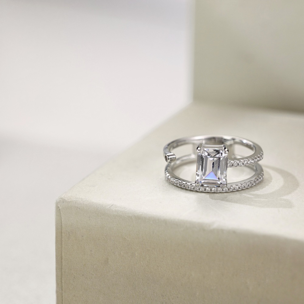 S925 Sterling Silver Ring Rectangular Chamfering Zircon Hollow Gang Drill