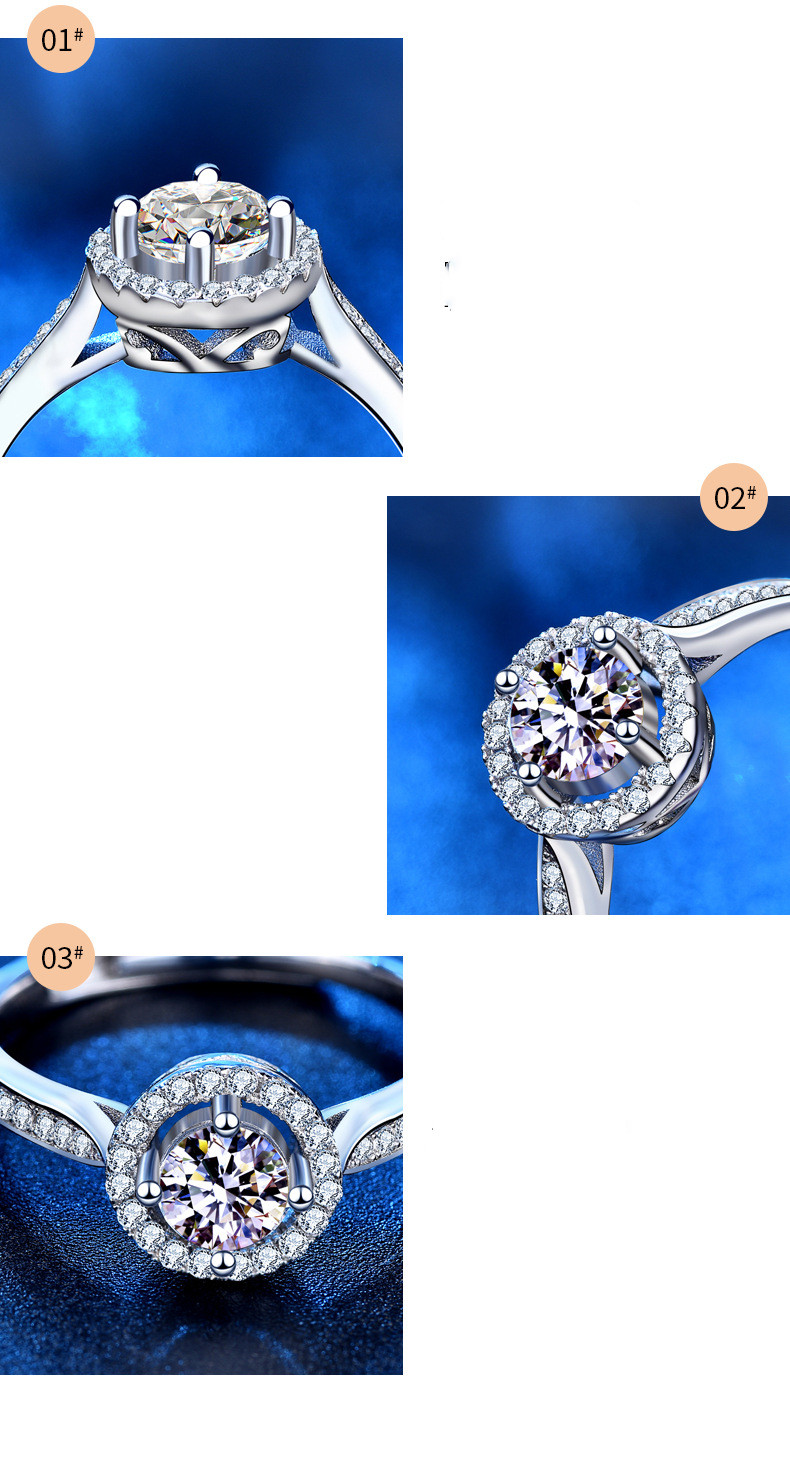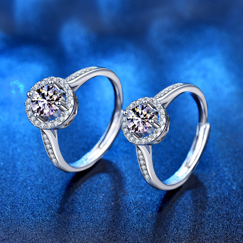 S925 Sterling Silver Round Bag Moissanite Princess Ring