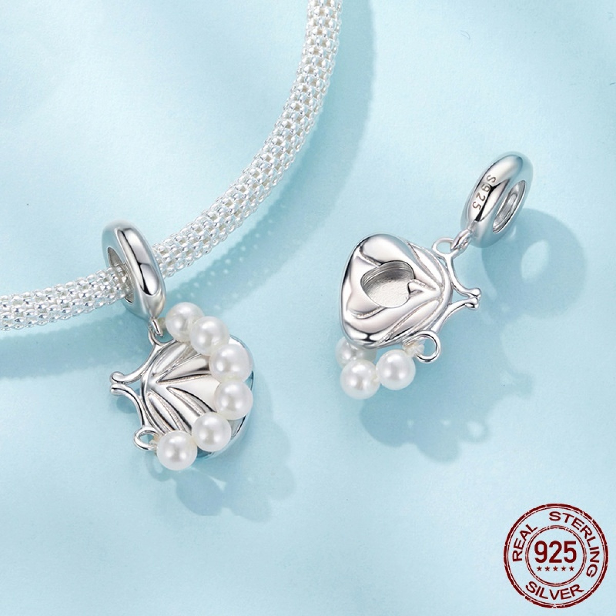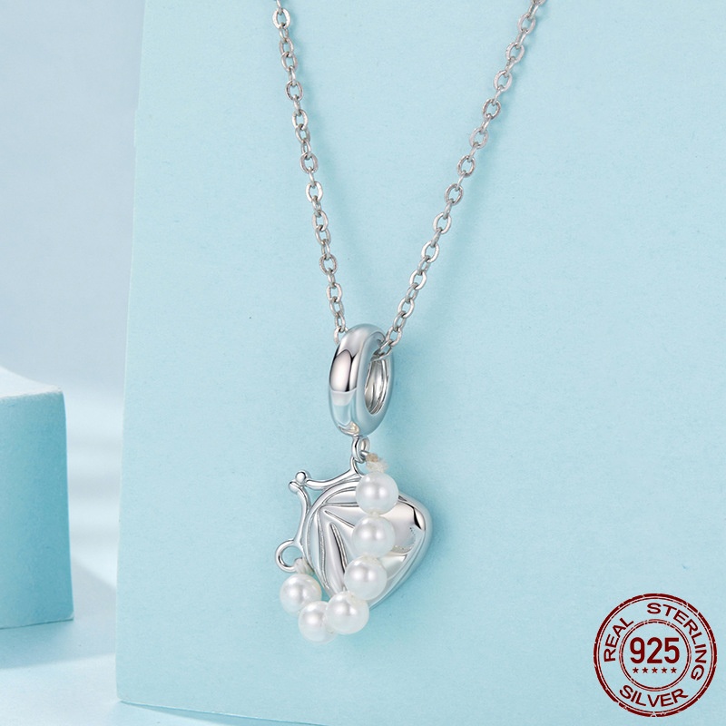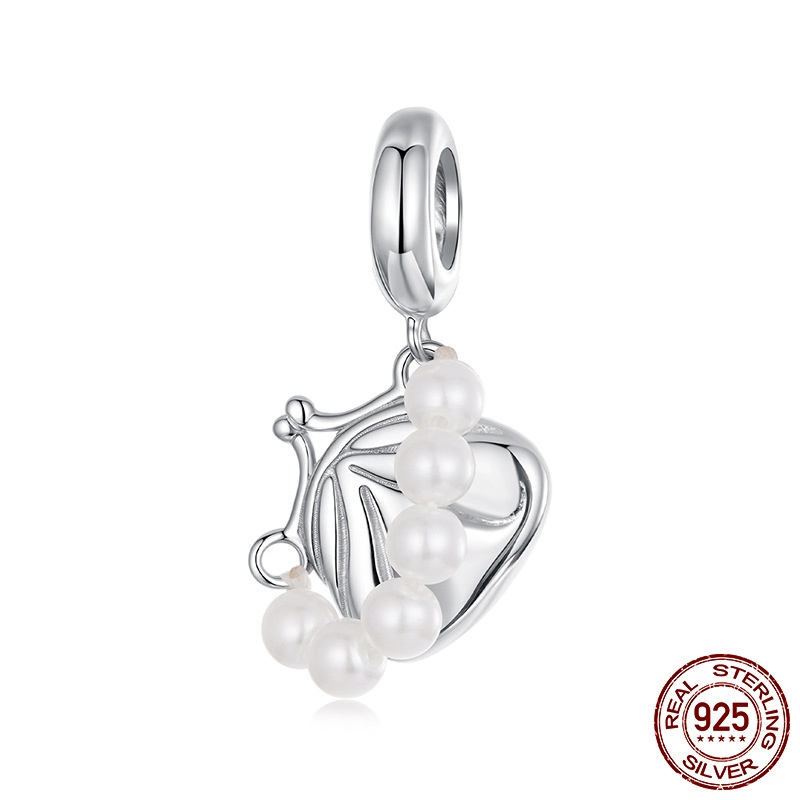 S925 Sterling Silver Shell Pearls Handbag Pendant Beaded