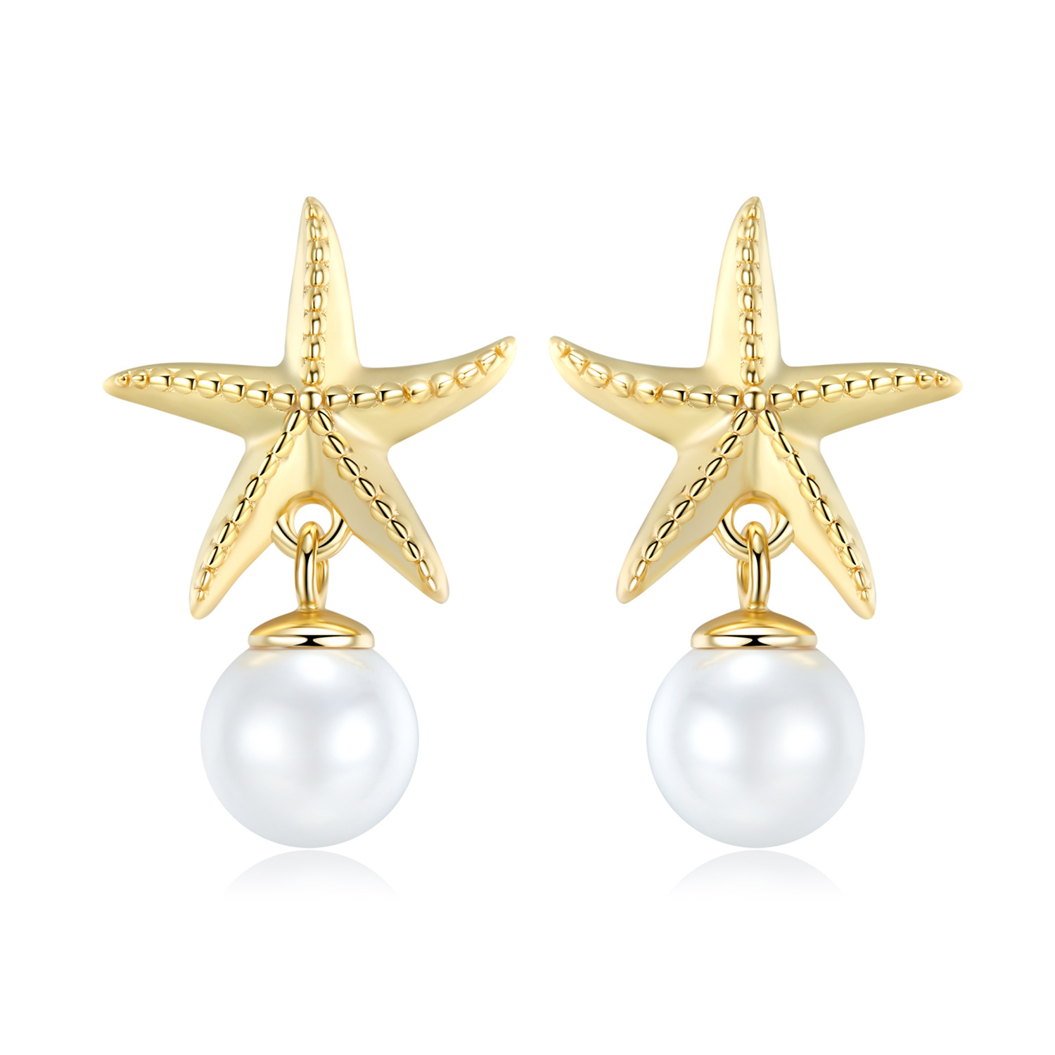 S925 Sterling Silver Starfish Earrings Freshwater Pearl Design