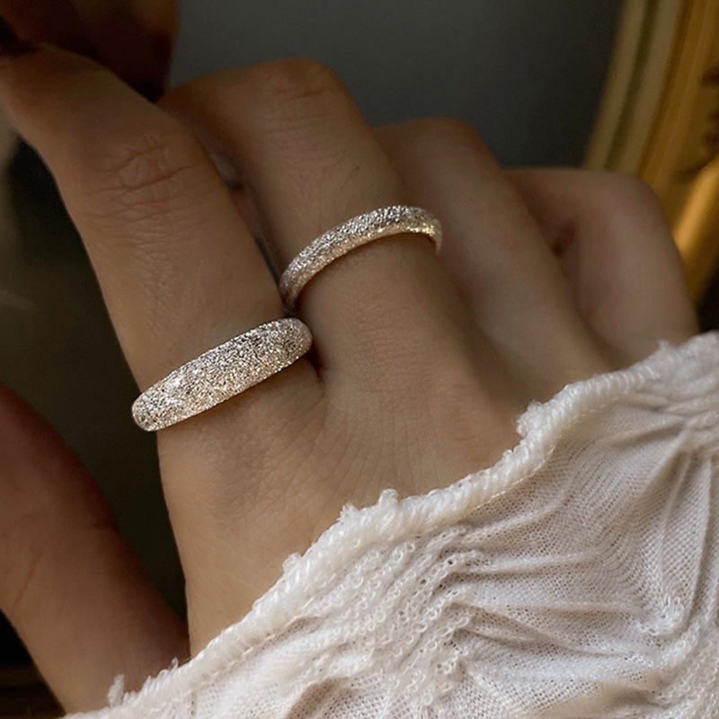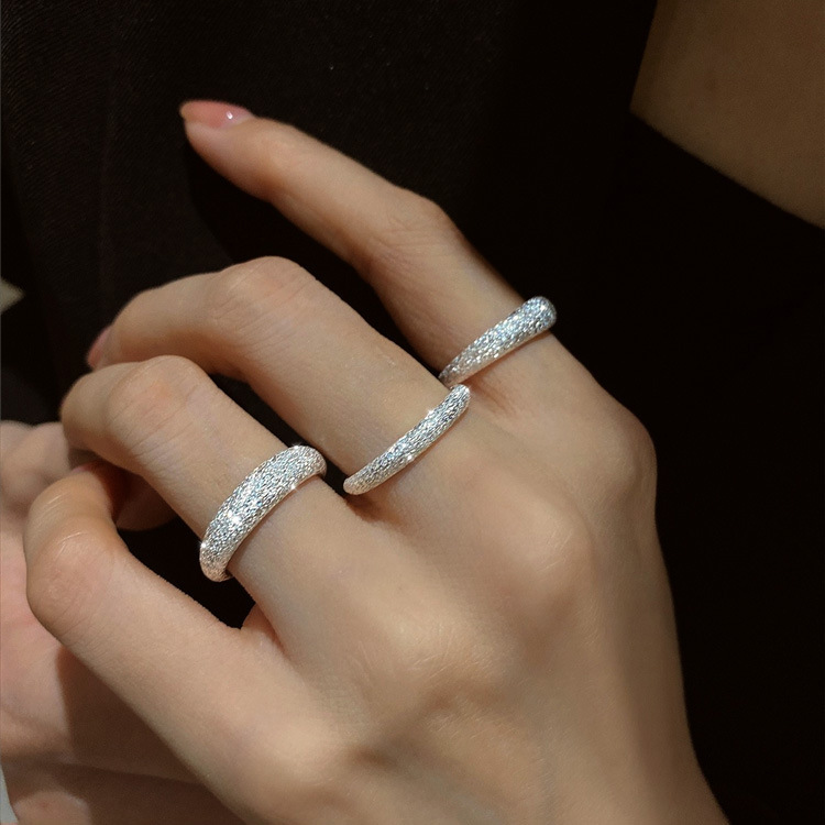 S925 Sterling Silver Starry Shimmer Ring For Women, INS Cool Style, Sparkling Sand & Glittering Texture Index Finger Ring