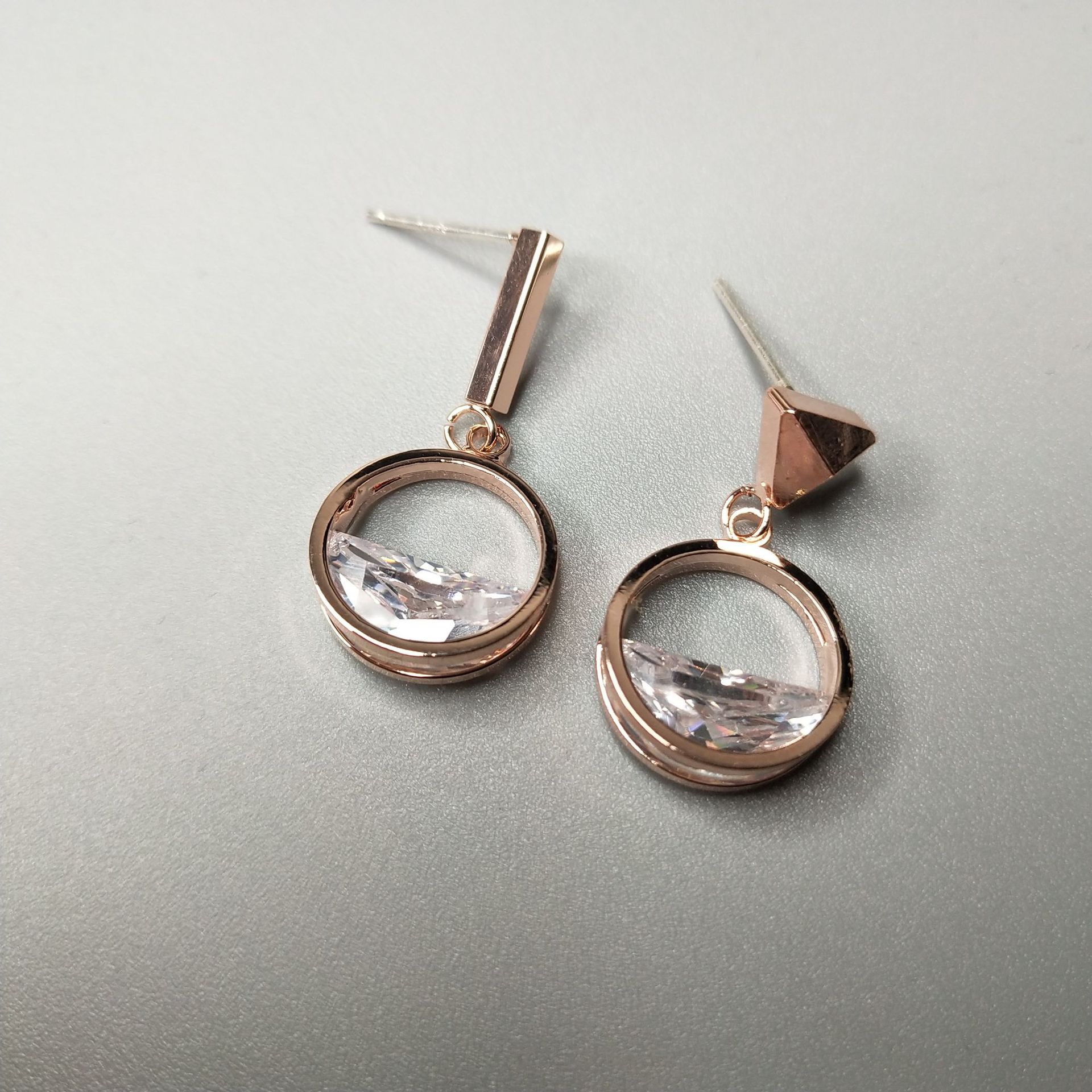 Style Korean Korean/Korean style Material Silver Processing technology Type earrings style women's Crystal type zircon shape round packaging bulk Applicable gifts occasions Employee benefits, wedding, travel commemoration, suitable for all occasions Inlay material Platinum / K white gold set with gemstones Color rose gold, white gold purity 925 silver