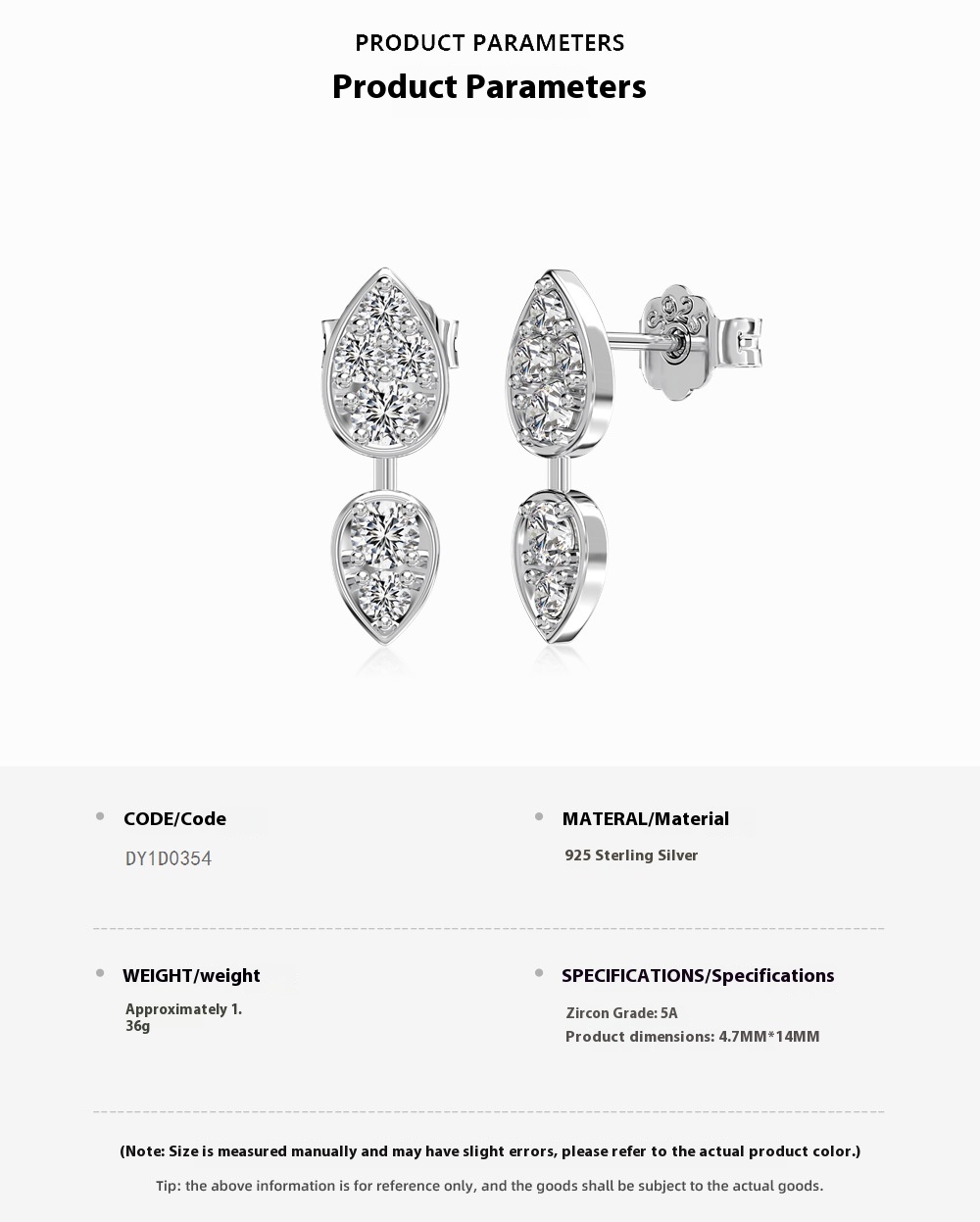 Product information:Treatment Process: Electroplating Color: DY1D0354-S-W-WH Material: Silver Shape: Geometry