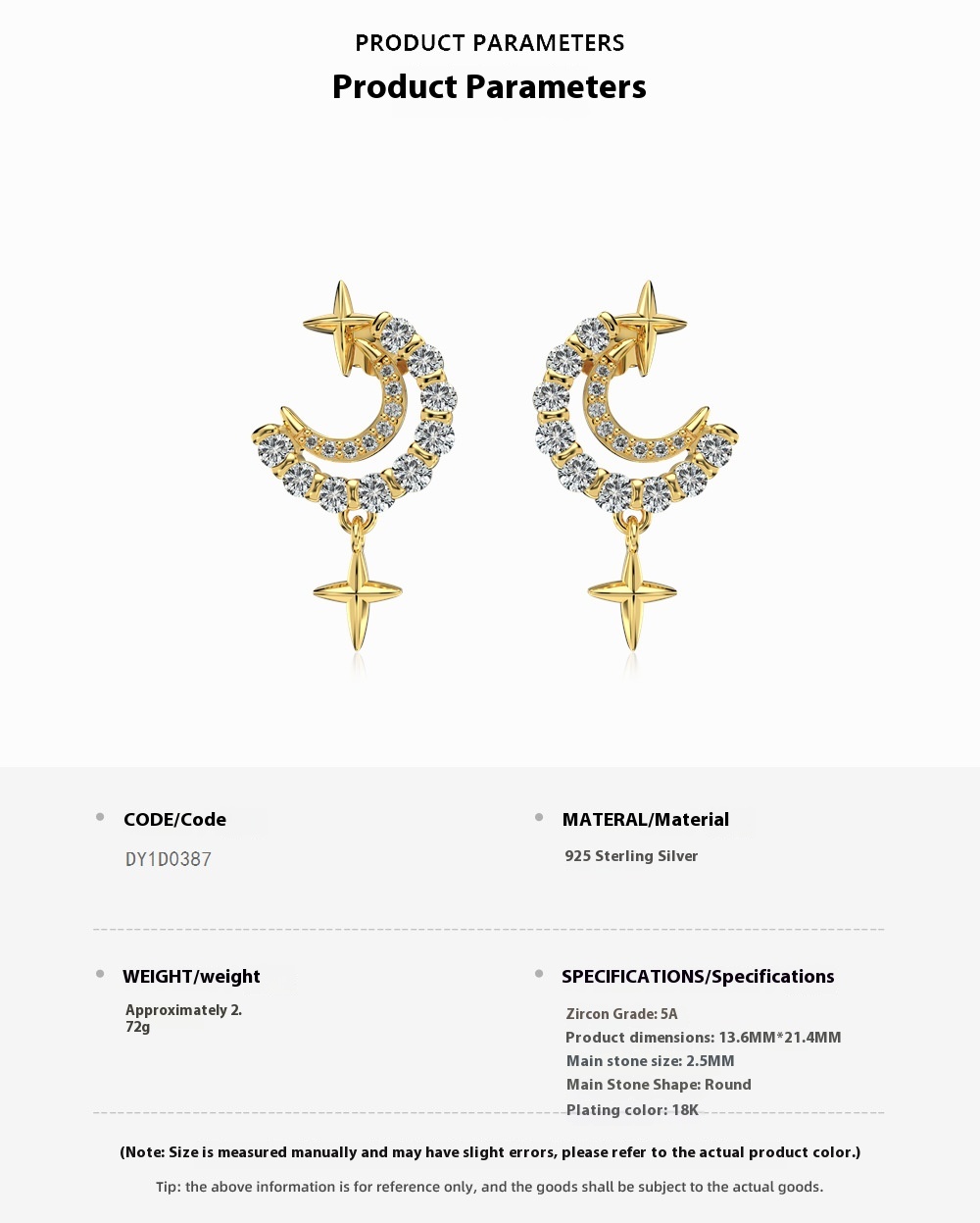 Color: Platinum DY1D0387-S-W-WH, gold DY1D0387-S-G-WH