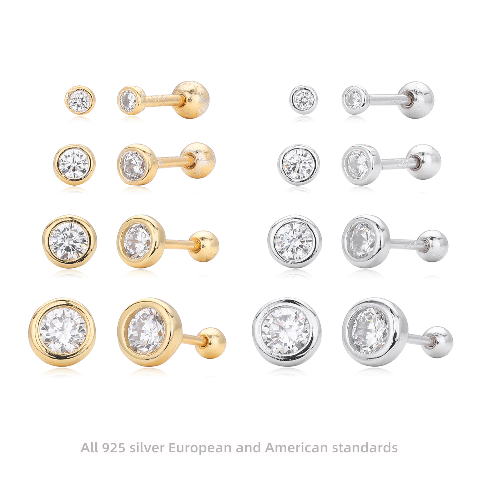 S925 Sterling Silver Threaded Earrings With Zircon Inlays