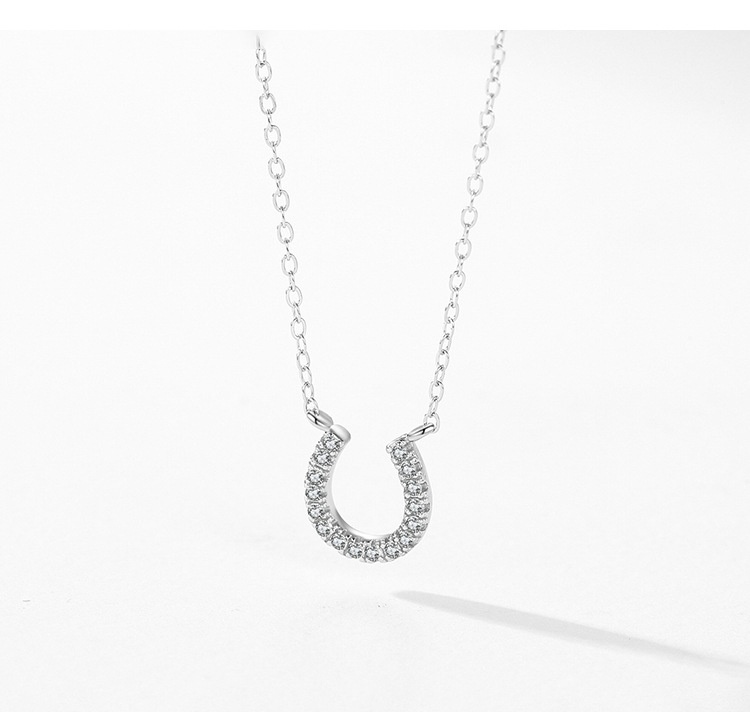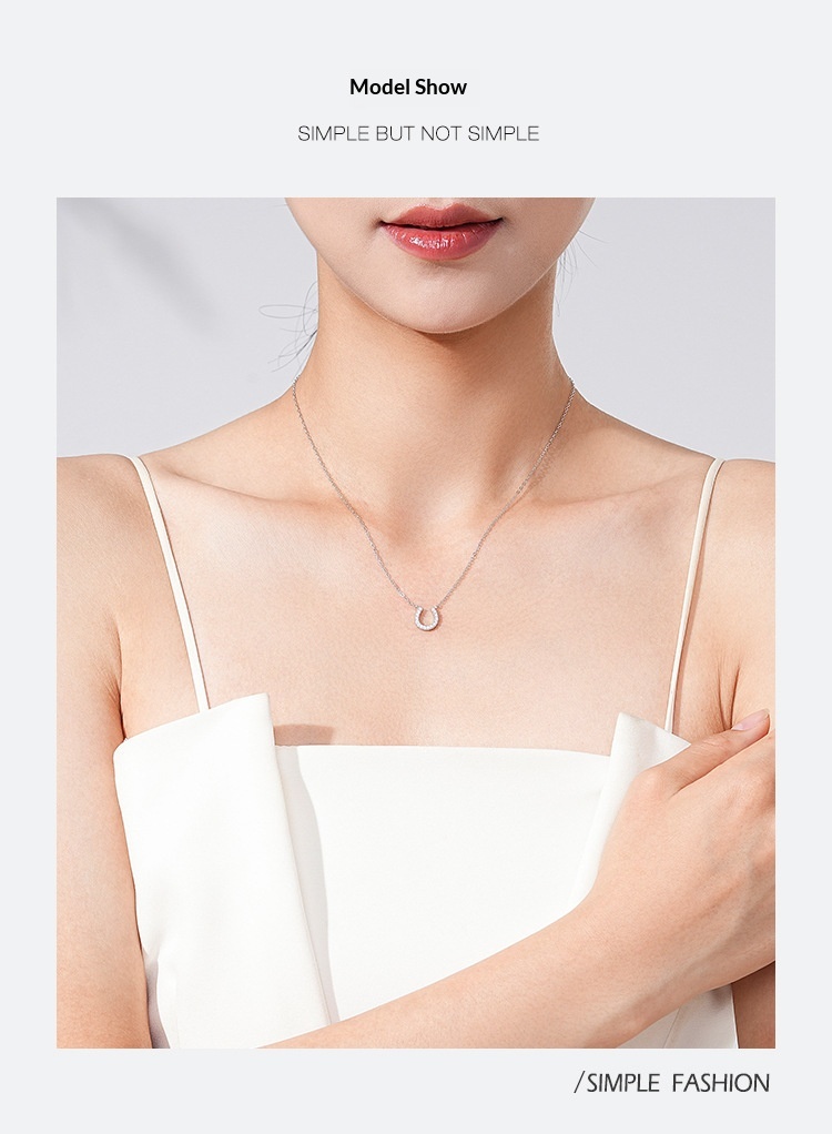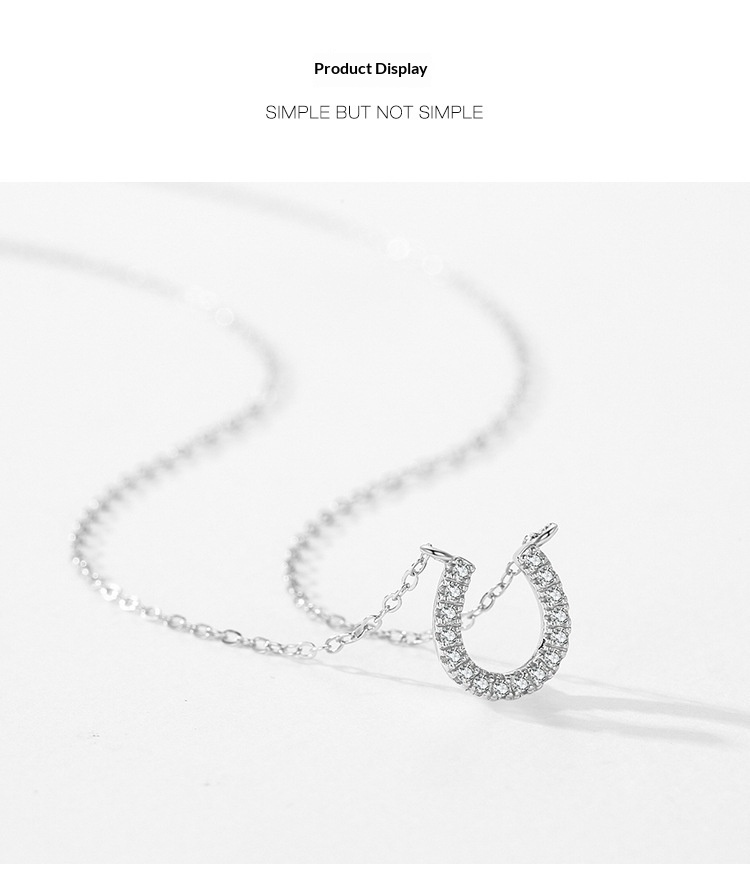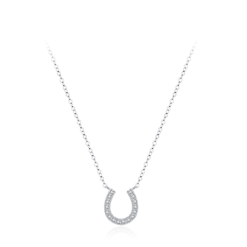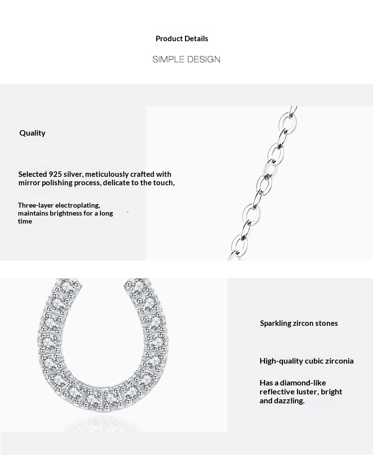 S925 Sterling Silver U-Shaped Simulated Diamond Pendant Necklace For Women