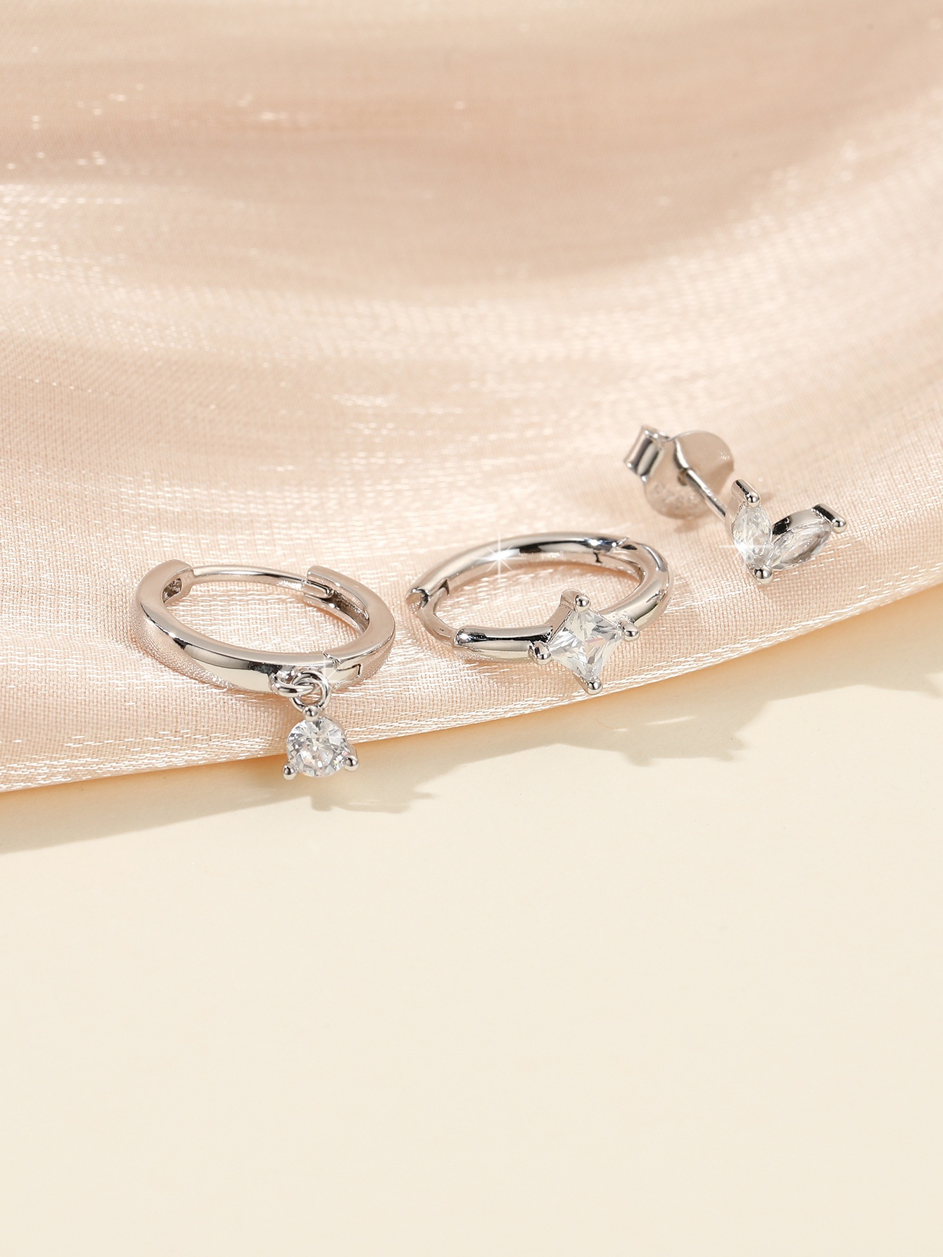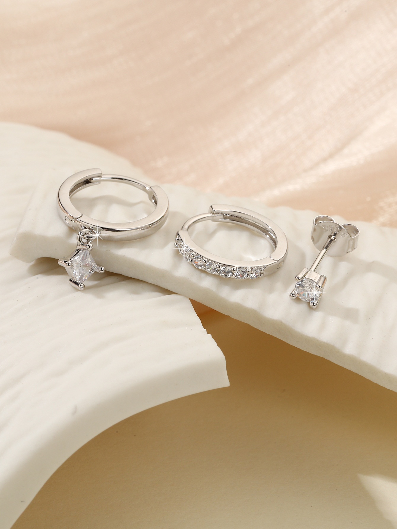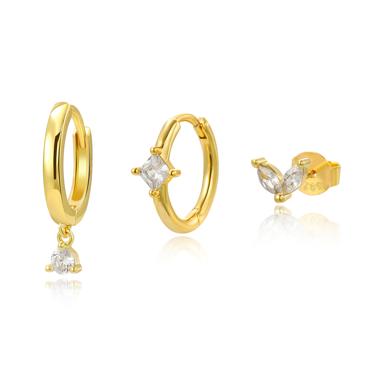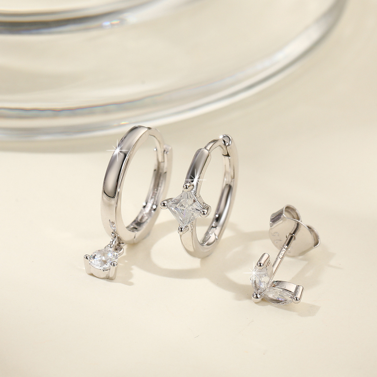 S925 Sterling Silver Zircon Diamond-embedded Geometric Earings Set