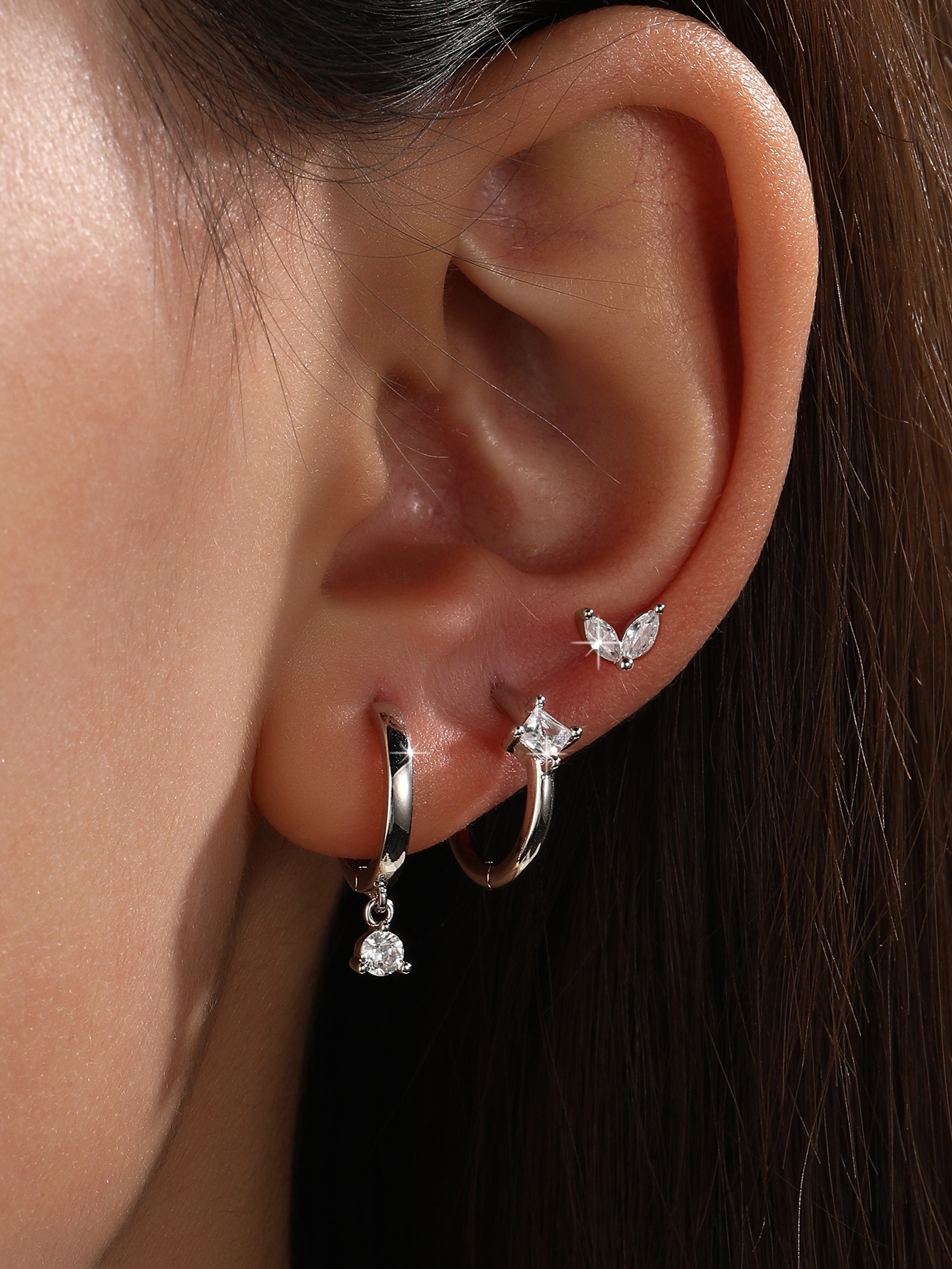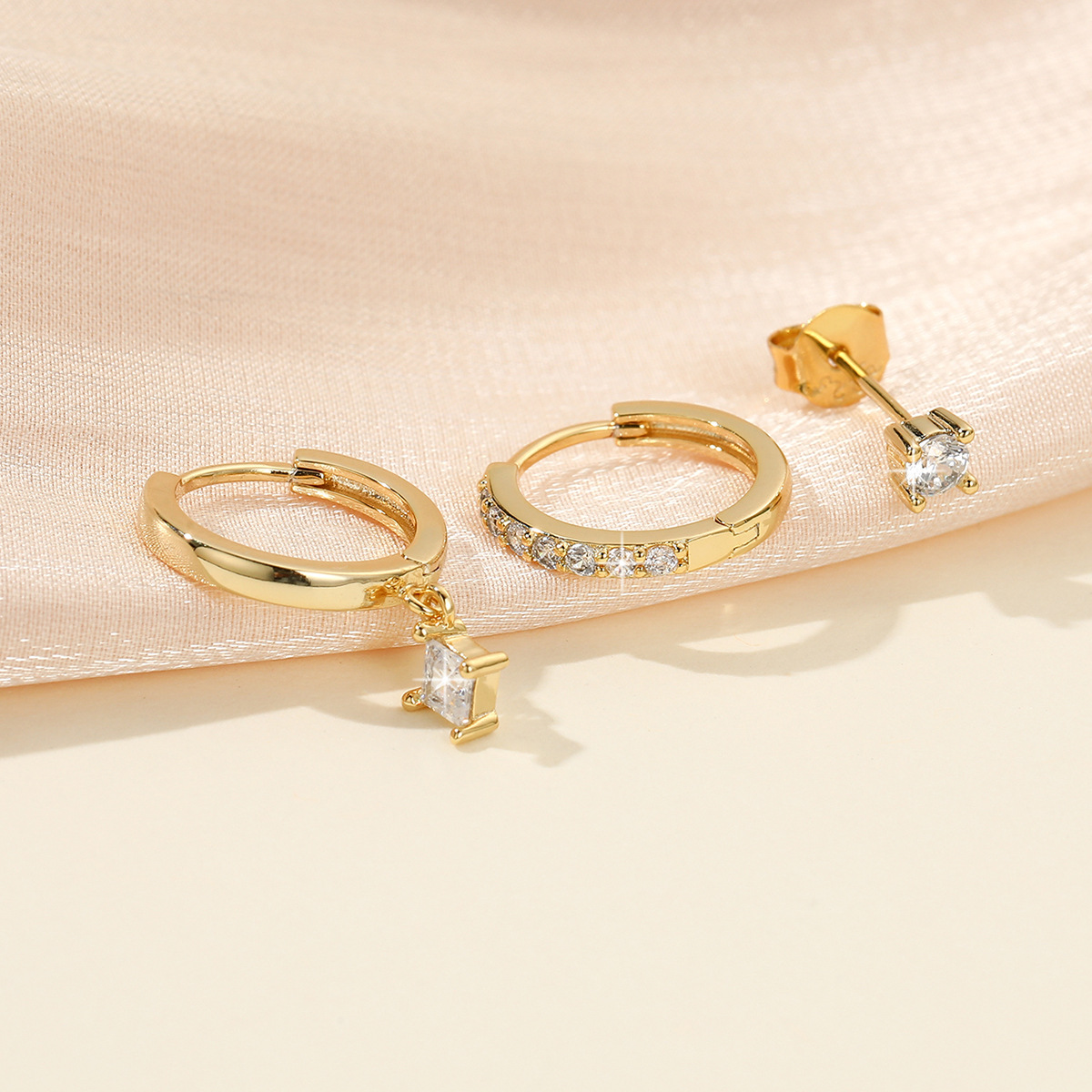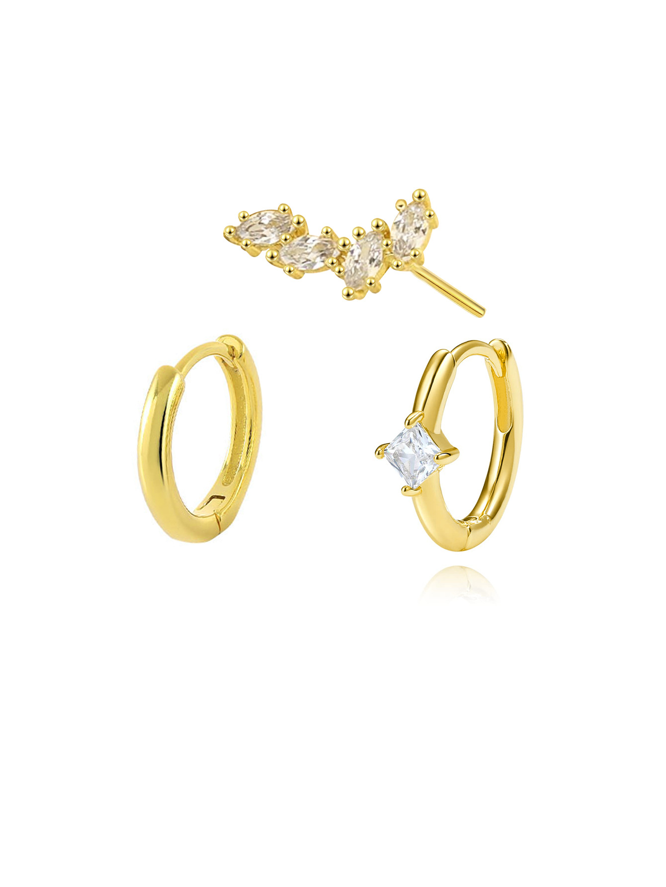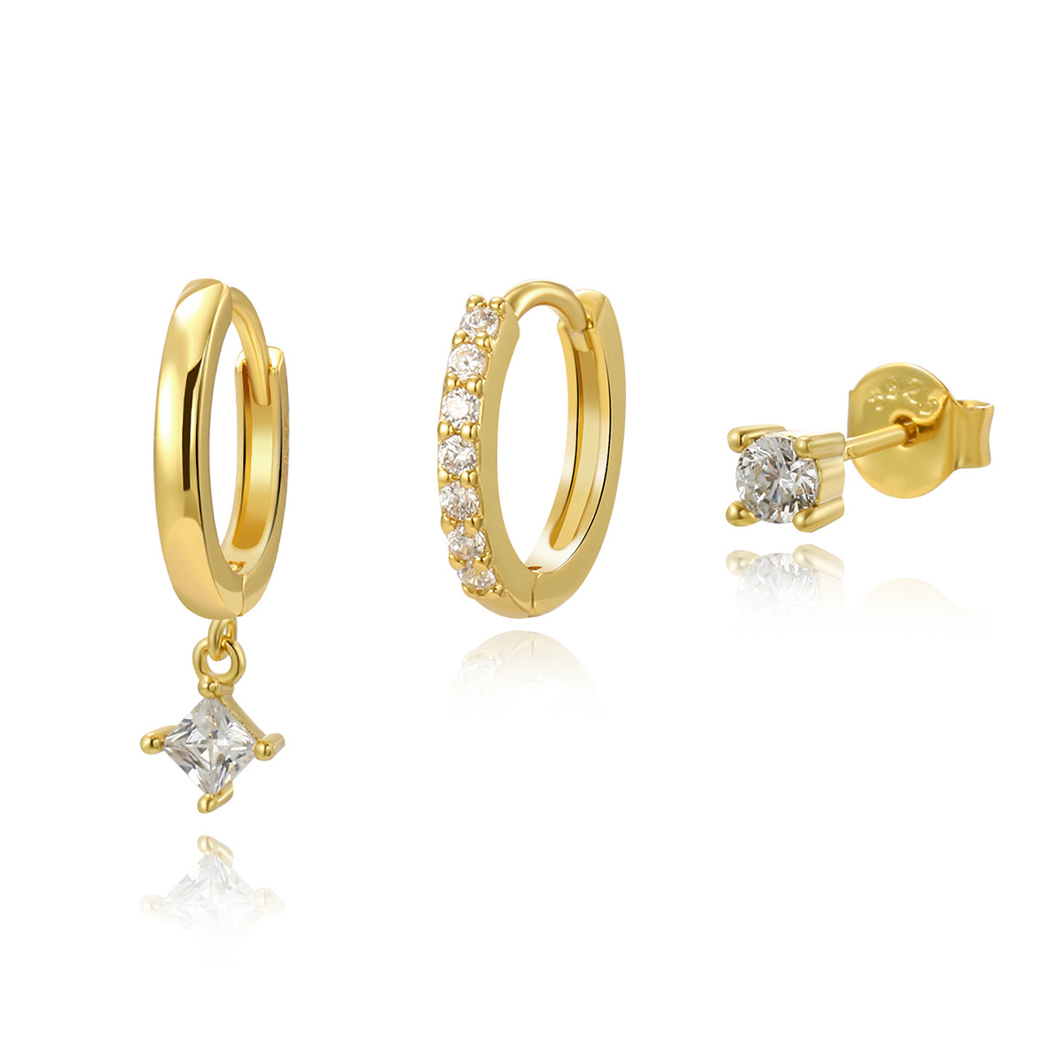 S925 Sterling Silver Zircon Diamond-embedded Geometric Earings Set