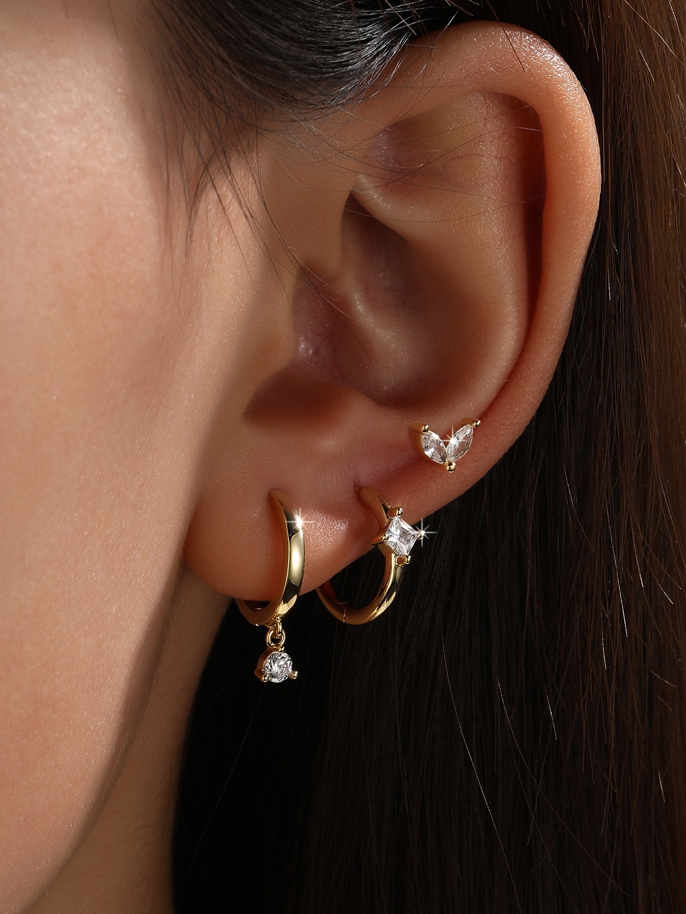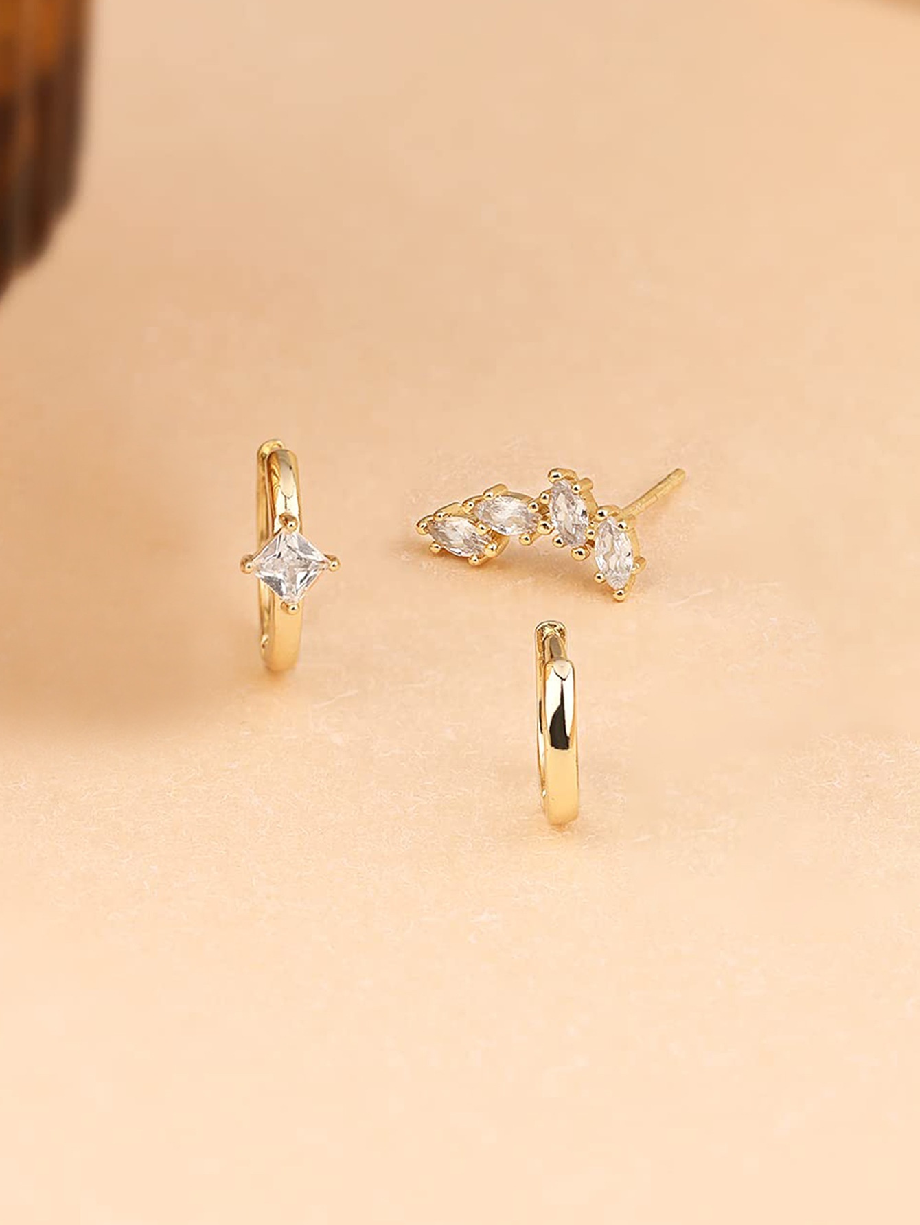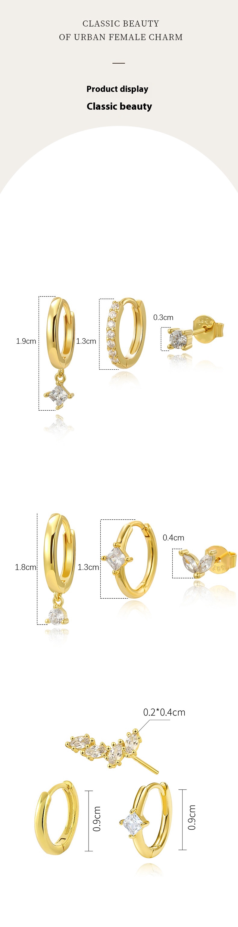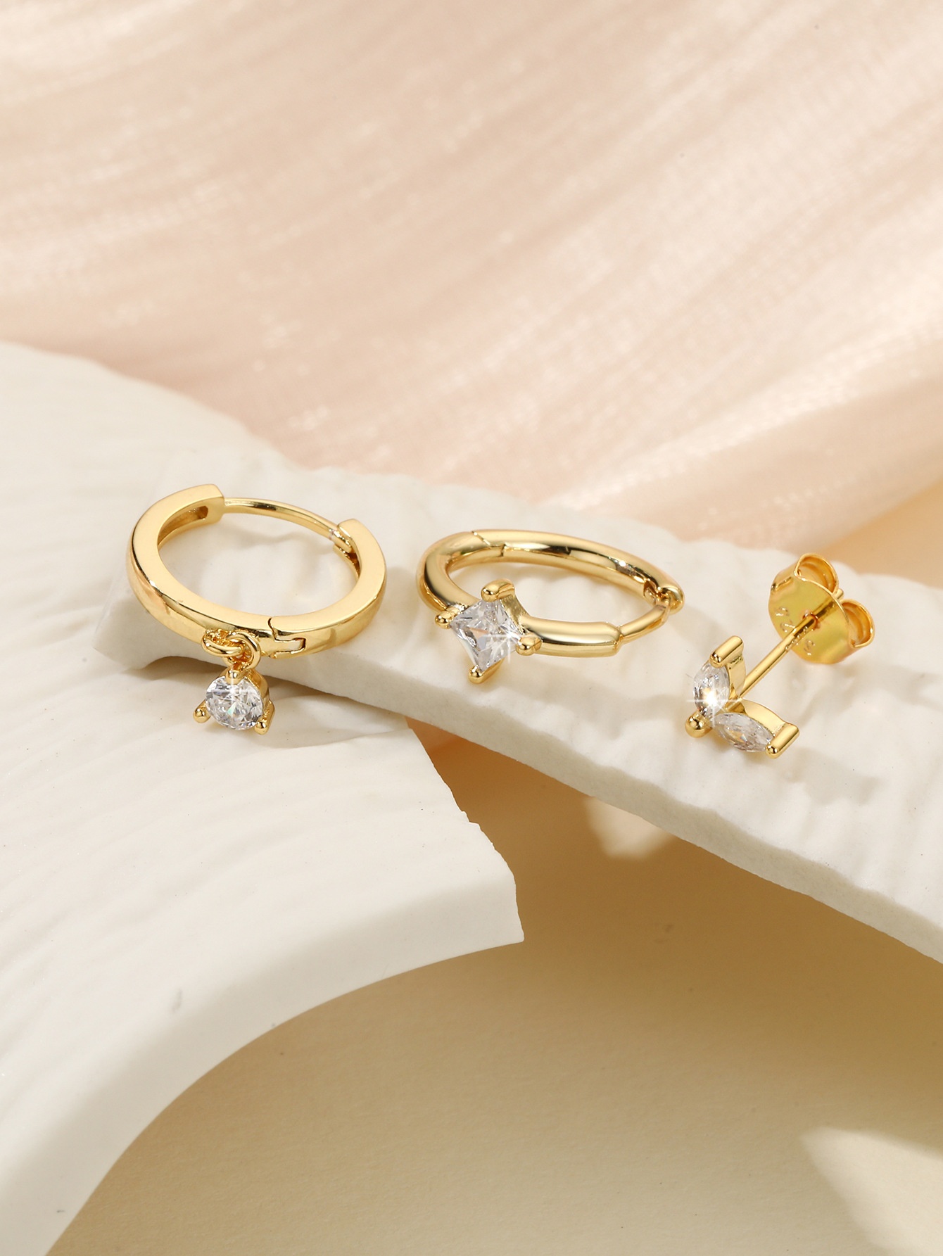 S925 Sterling Silver Zircon Diamond-embedded Geometric Earings Set