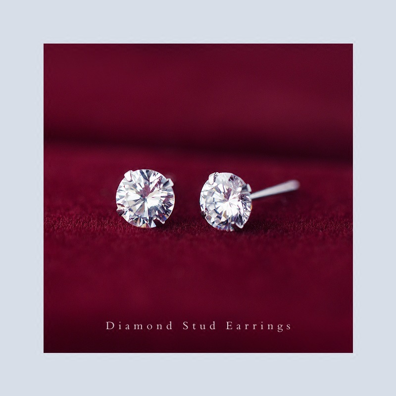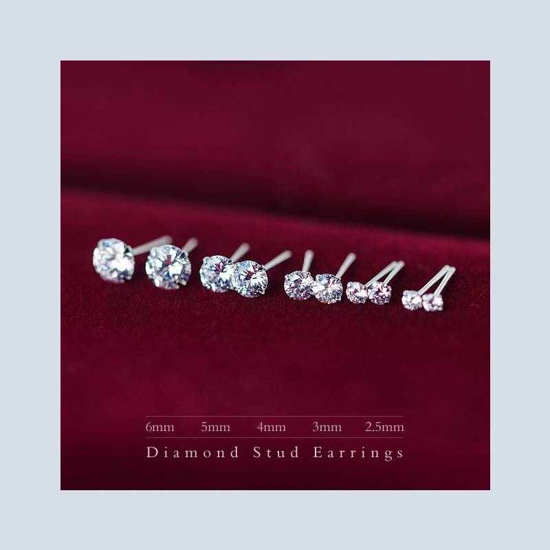 S925 White Stud Earrings With Diamonds Fashionable And Simple