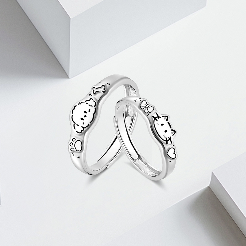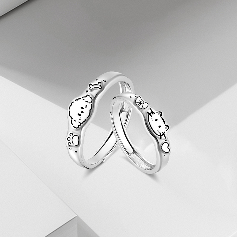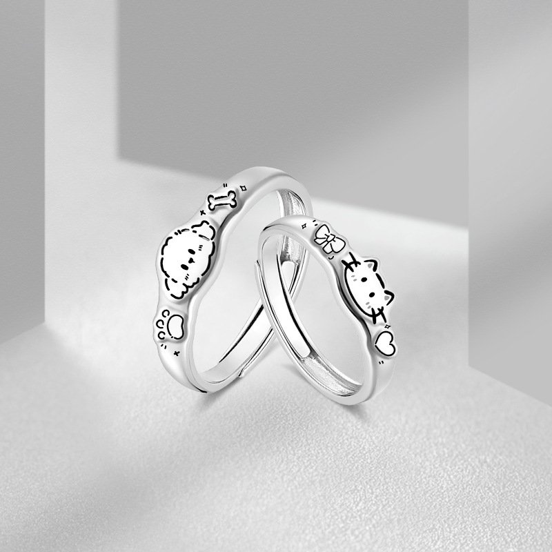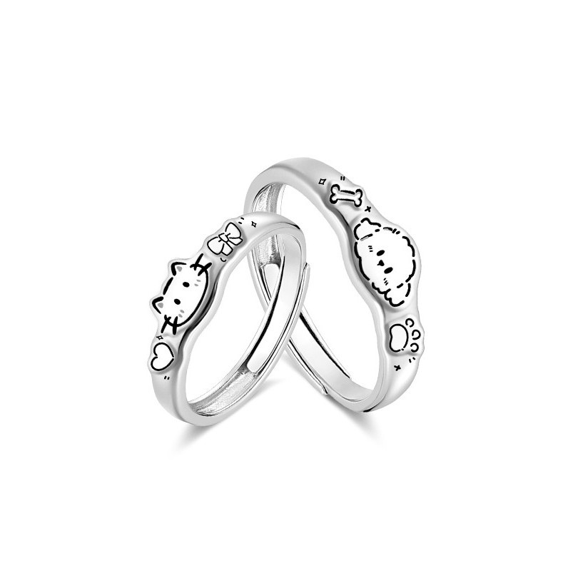 S999 Pure Silver Original KT Cat Graffiti Ring, Cute Cartoon Niche Couple Rings, Simple Band Rings