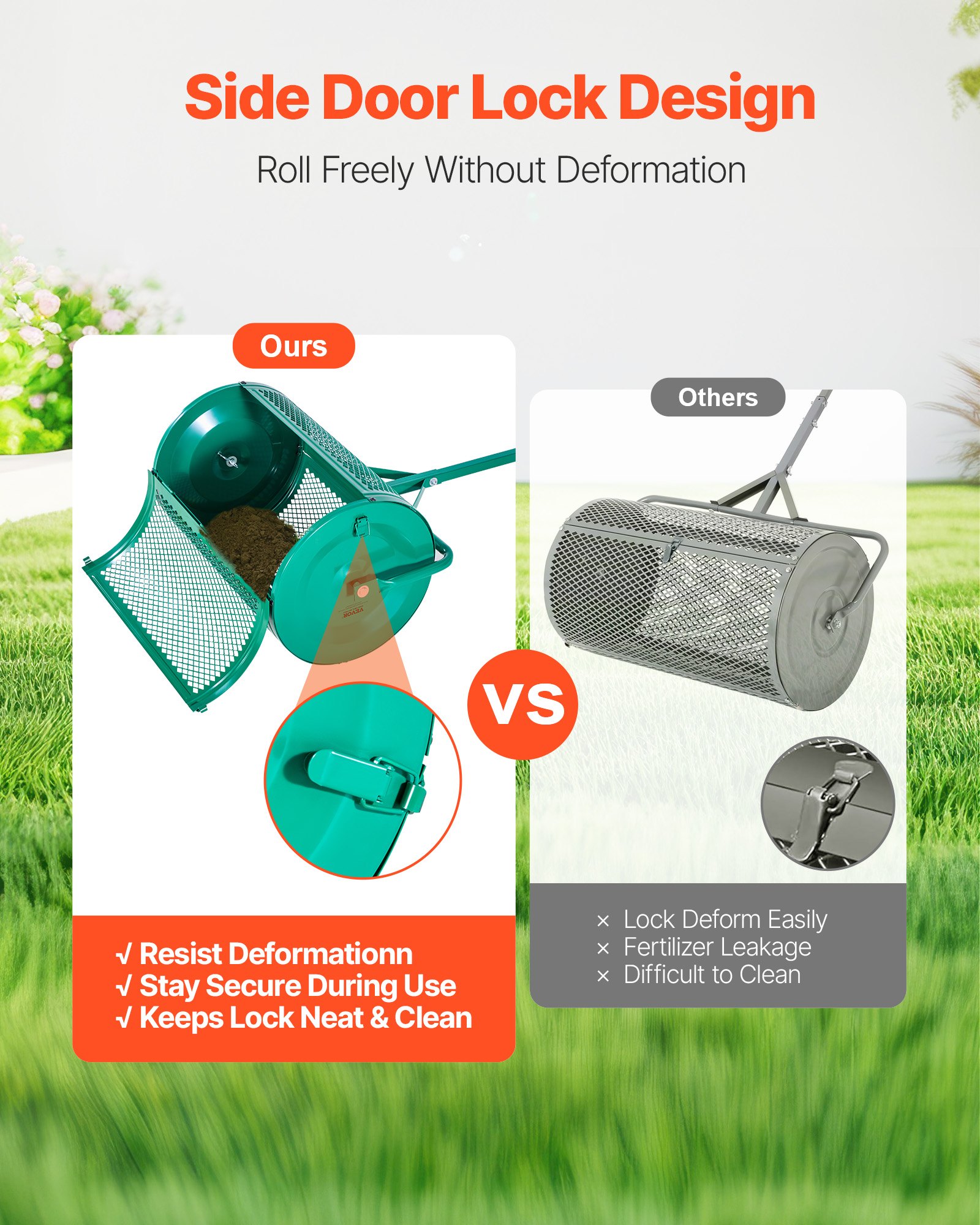 VEVOR Saatgutstreuer, 67 cm breiter Kompoststreuer mit Schiebe-/Schleppgriff, Torfmoosstreuer 4 Höhen verstellbar, Gartenstreuer für Garten, robuster Grassamenstreuer zum Pflanzen & Säen