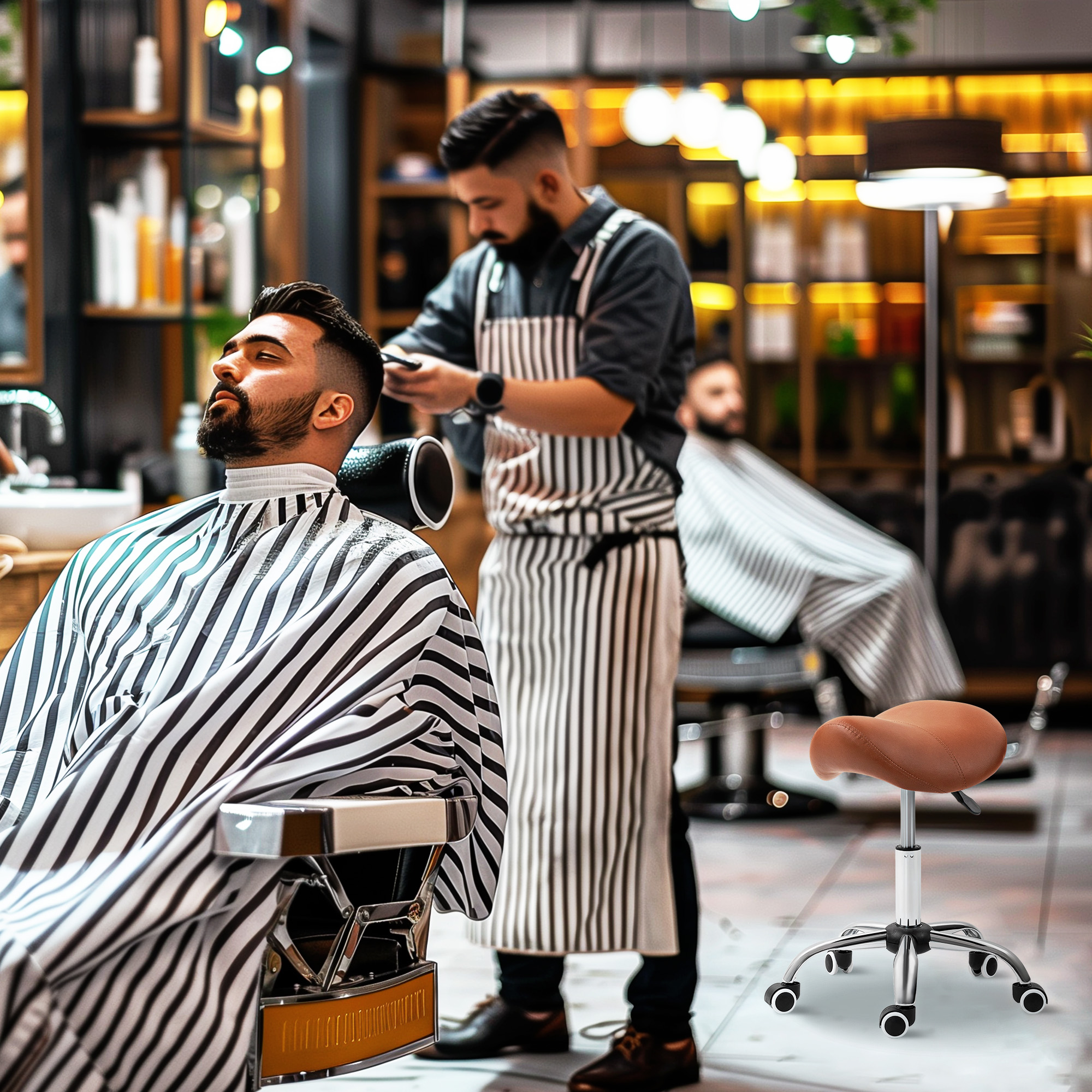 Ensure you have the correct posture when work in your saloon/tattoo parlour, or even at home, with this hairdressing chair from . A heavy metal base for balance and stability, the height is adjustable between 49cm and 61cm: set this stool to a level best for you. The moulded seat is padded, for comfort and posture support. Five wheels to move around easily whilst seated.