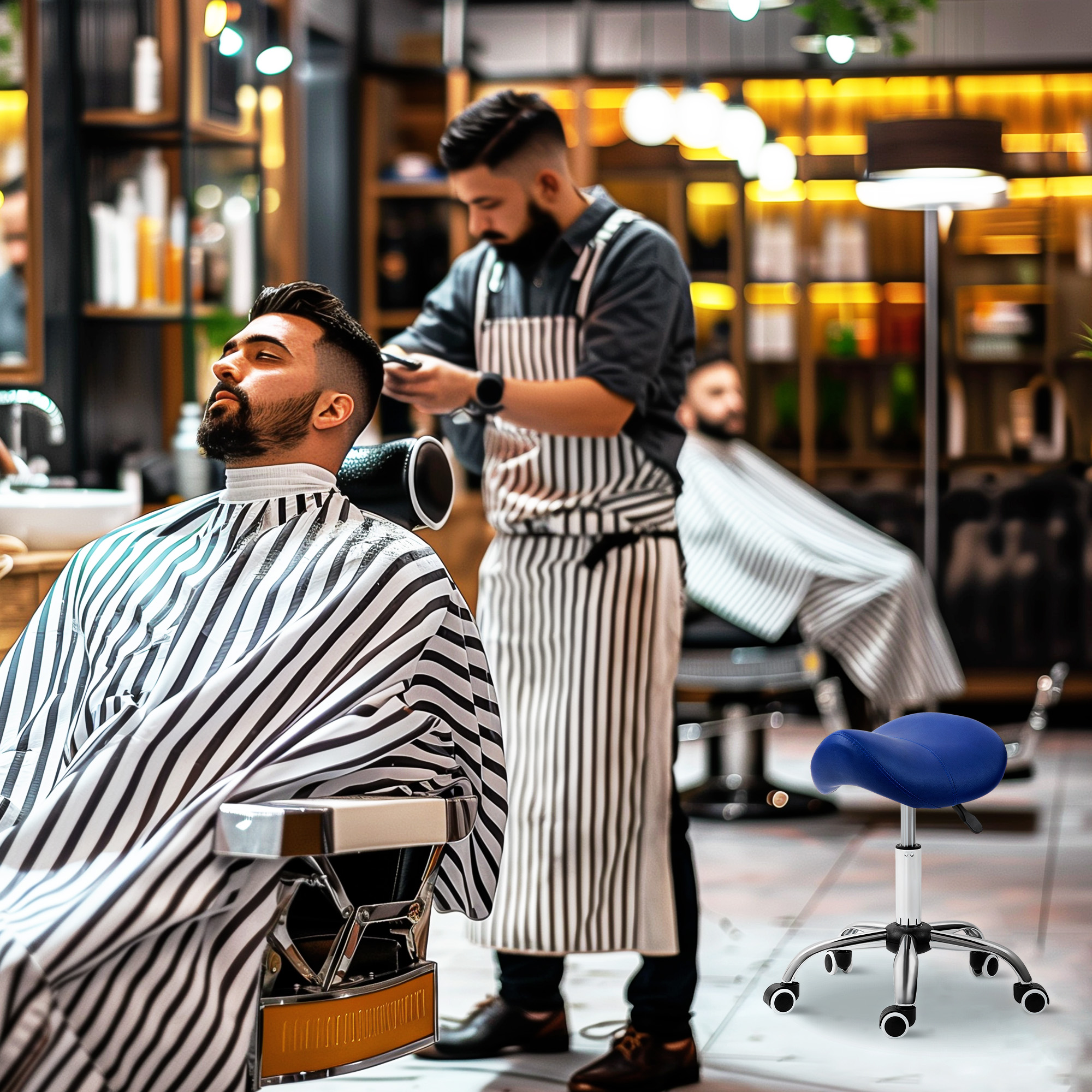 Ensure you have the correct posture when work in your saloon/tattoo parlour, or even at home, with this hairdressing chair from . A heavy metal base for balance and stability, the height is adjustable between 49cm and 61cm: set this stool to a level best for you. The moulded seat is padded, for comfort and posture support. Five wheels to move around easily whilst seated.