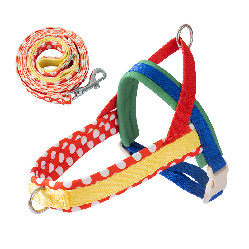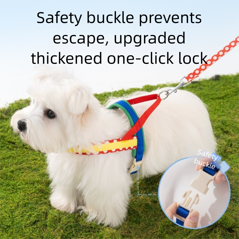 Ensure safe and stylish walks with this Escape-Proof Colorful Dog Harness & Leash Set! Featuring a vibrant polka-dot design with adjustable straps, this harness is secure, lightweight, and pressure-free—preventing escapes while keeping your pup comfortable. The matching leash adds a fun, coordinated touch, making it perfect for daily outings or adventures. Ideal for small dogs, this set combines safety, comfort, and eye-catching style, giving pet parents peace of mind and their furry companions a trendy walking experience.