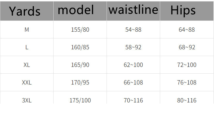 Size: L (approximately 70-90 kg), XL (approximately 90-100 kg), 2XL (approximately 110-120 kg), 3XL (approximately 130-140 kg), 4XL (approximately 150-160 kg)