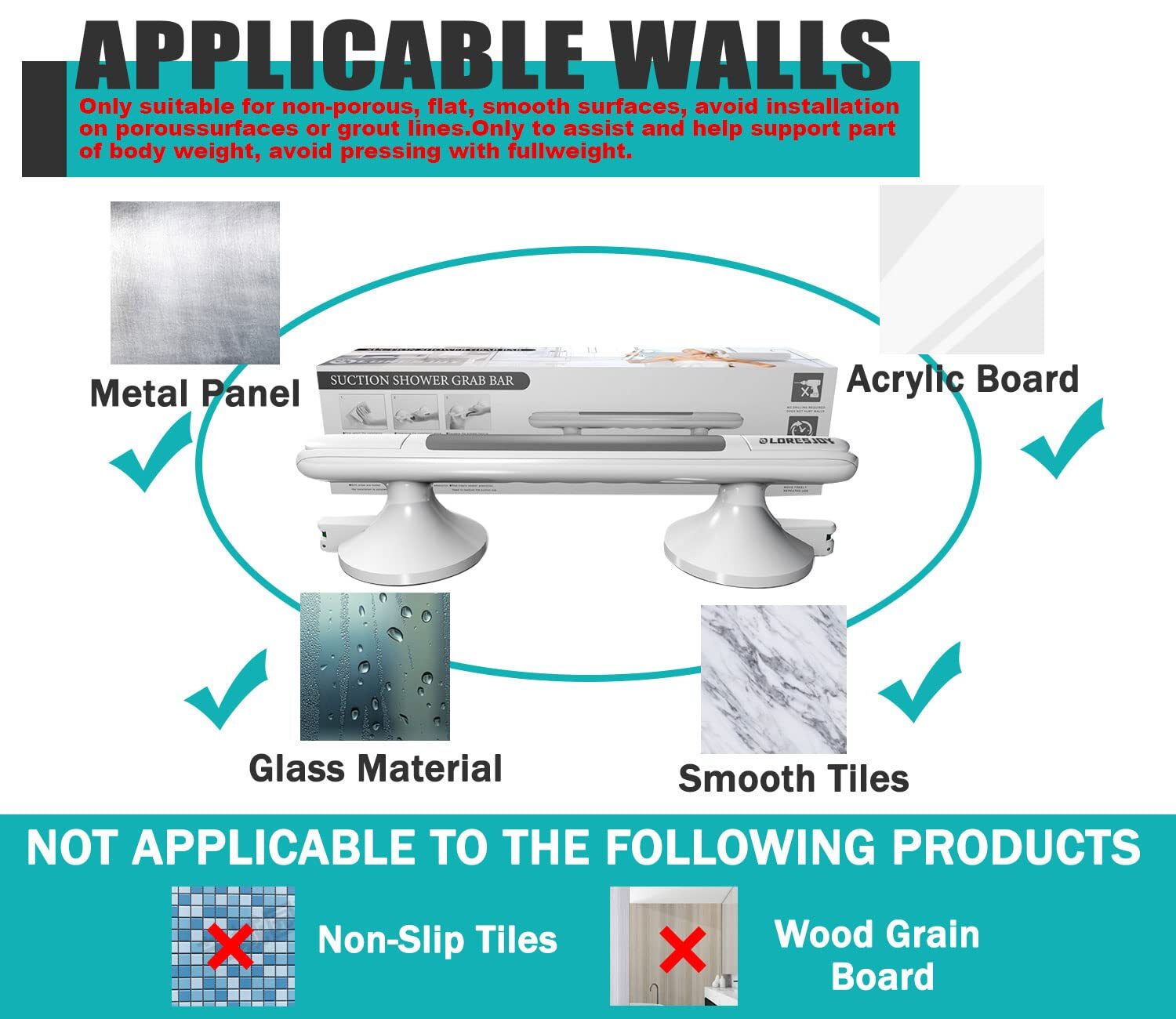 Durable and non-slip: the handle is made of technical ABS plastic with bright surface treatment, durable and wear-resistant. Shower handle suction cup give you steady confidence in a slippery area.