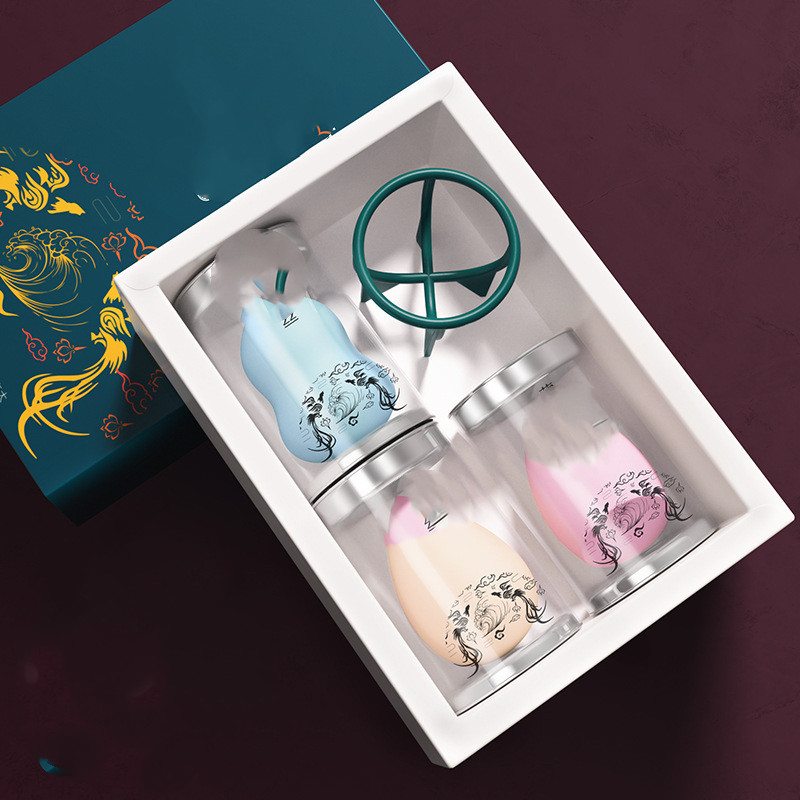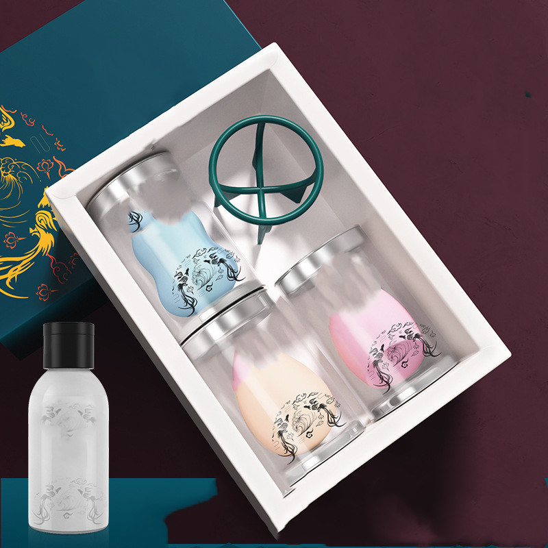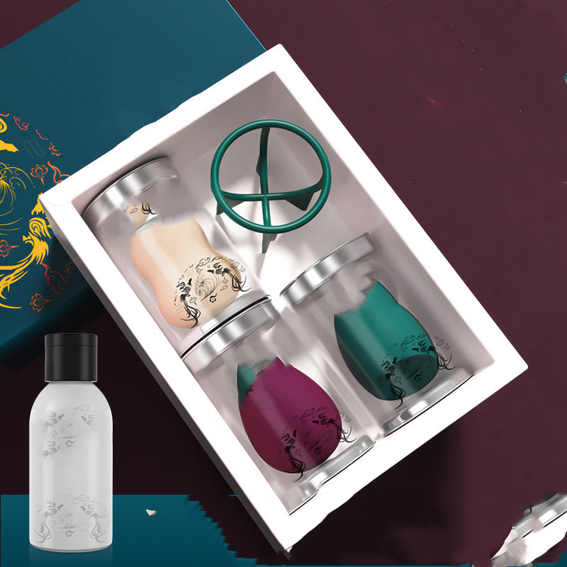 Variety of beauty tools before makeup and base makeup: makeup egg