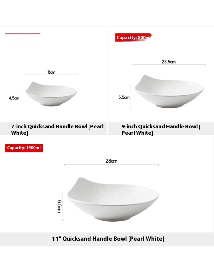 Specifications: 7-inch quicksand handle Bowl [Pearl White],7-inch quicksand handle Bowl [Bright Black],9-inch quicksand handle Bowl [Pearl White],9-inch quicksand handle Bowl [Bright Black],11-inch quicksand handle Bowl [Pearl White],11-inch quicksand handle Bowl [bright black]
