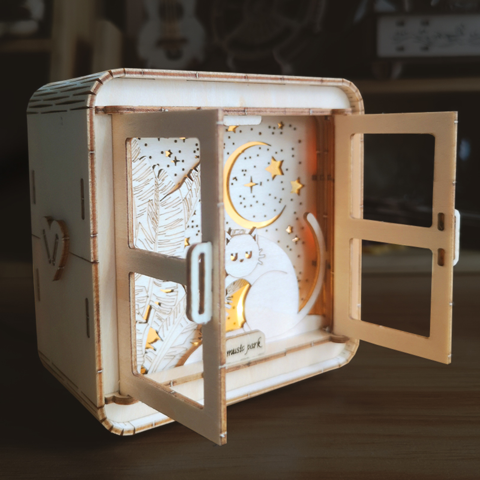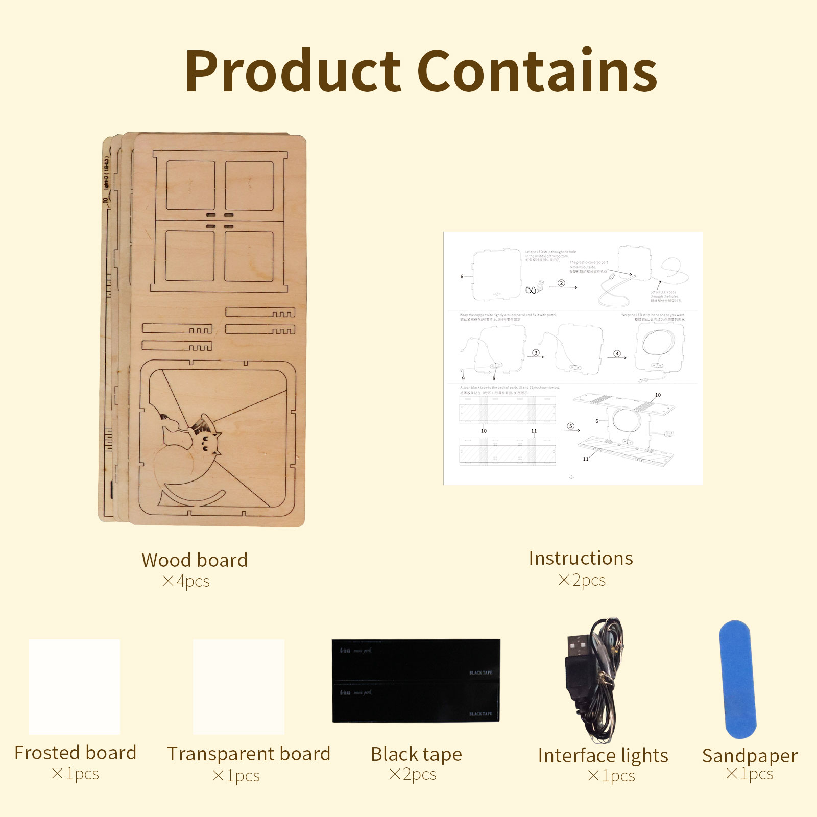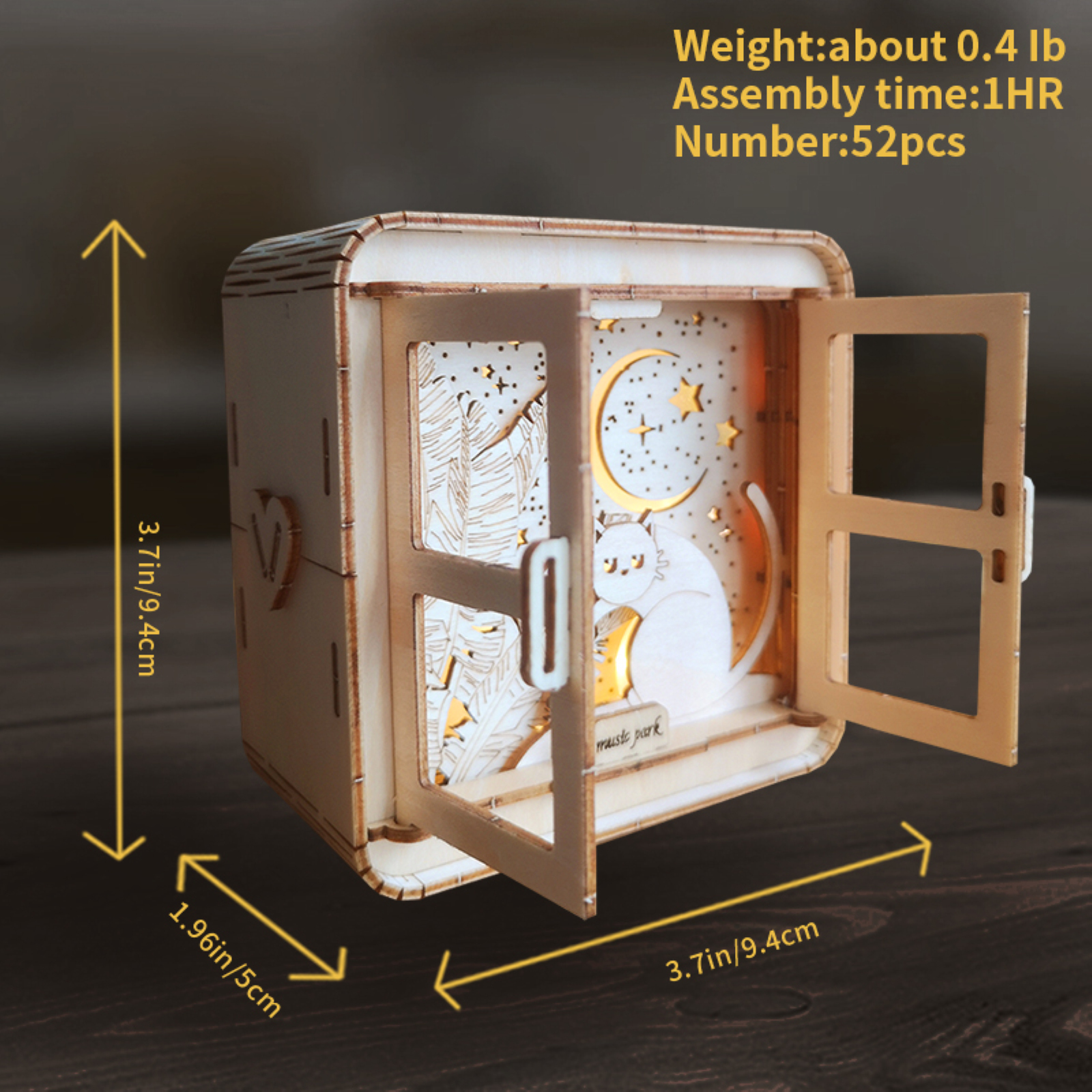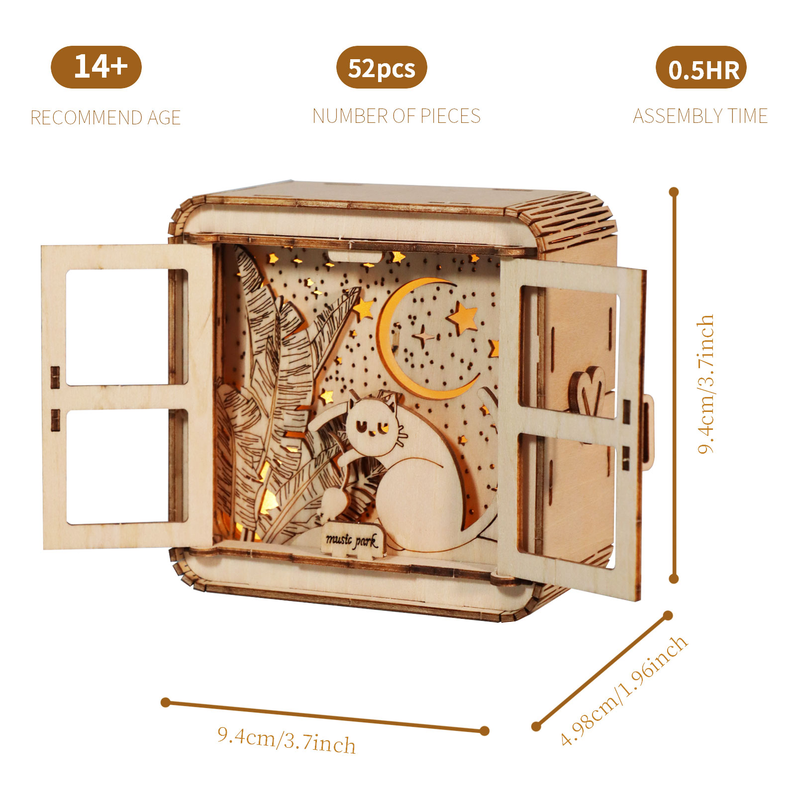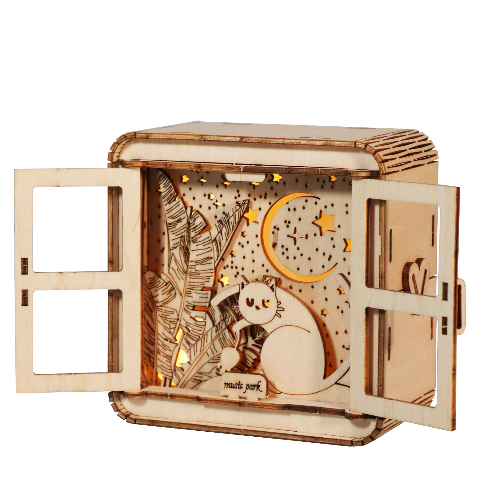 Sales Are Prohibited On The TEMU And SHEIN -MUSIC PARK 3D Wooden Puzzles Cat Model Kit Night Lights Desk Decorations Birthday Christmas Gifts For Women Age14