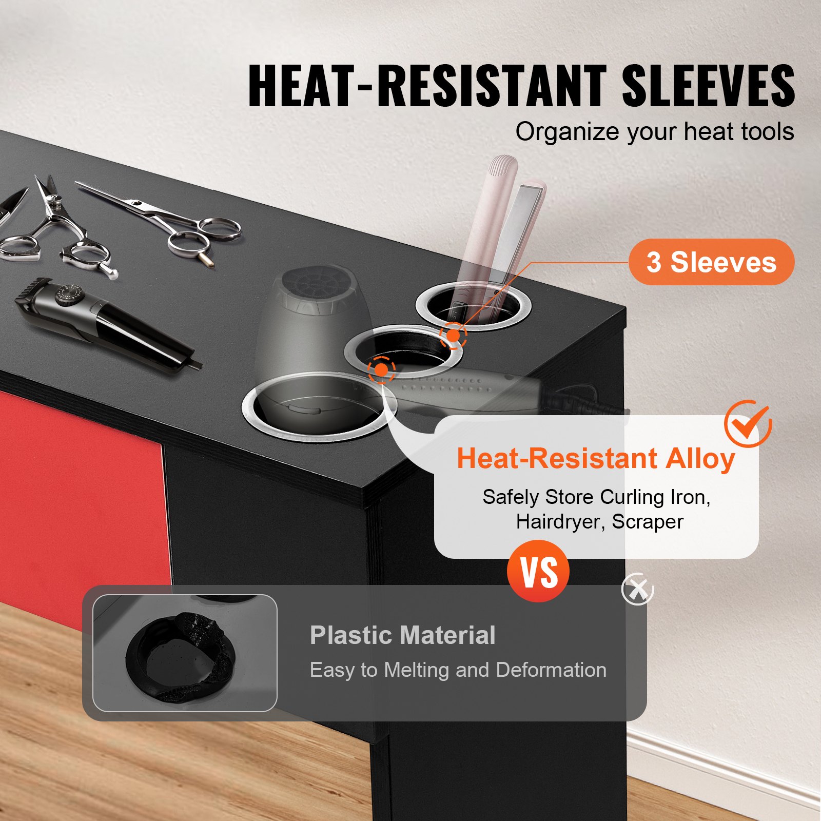 VEVOR Salonstation, Wandmontage, Friseursalonstation für Friseure, Beauty-Spa-Möbelset, 1 Lagerschrank, 3 Fächer und 2 Schubladen (eine abschlie_bar), Schwarz und Rot, 102,8 x 30 x 170 cm
