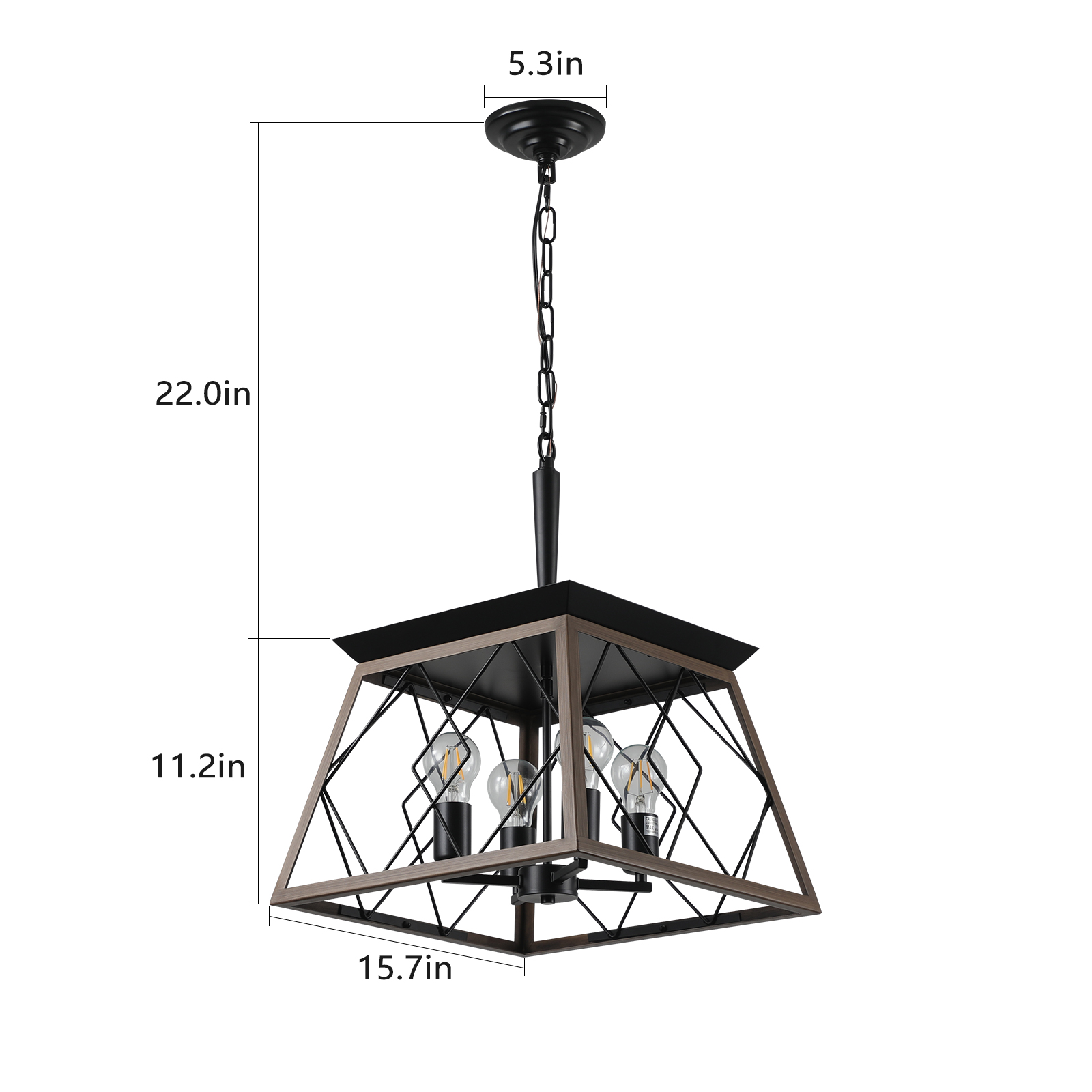 Same As W1340111202-L1008 16in Walnut Industrial 4-Light Pendant Chandelier, Modern Metal Cage Design, Adjustable Hanging Light For Dining Room, Kitchen, Living Room No Bulbs
