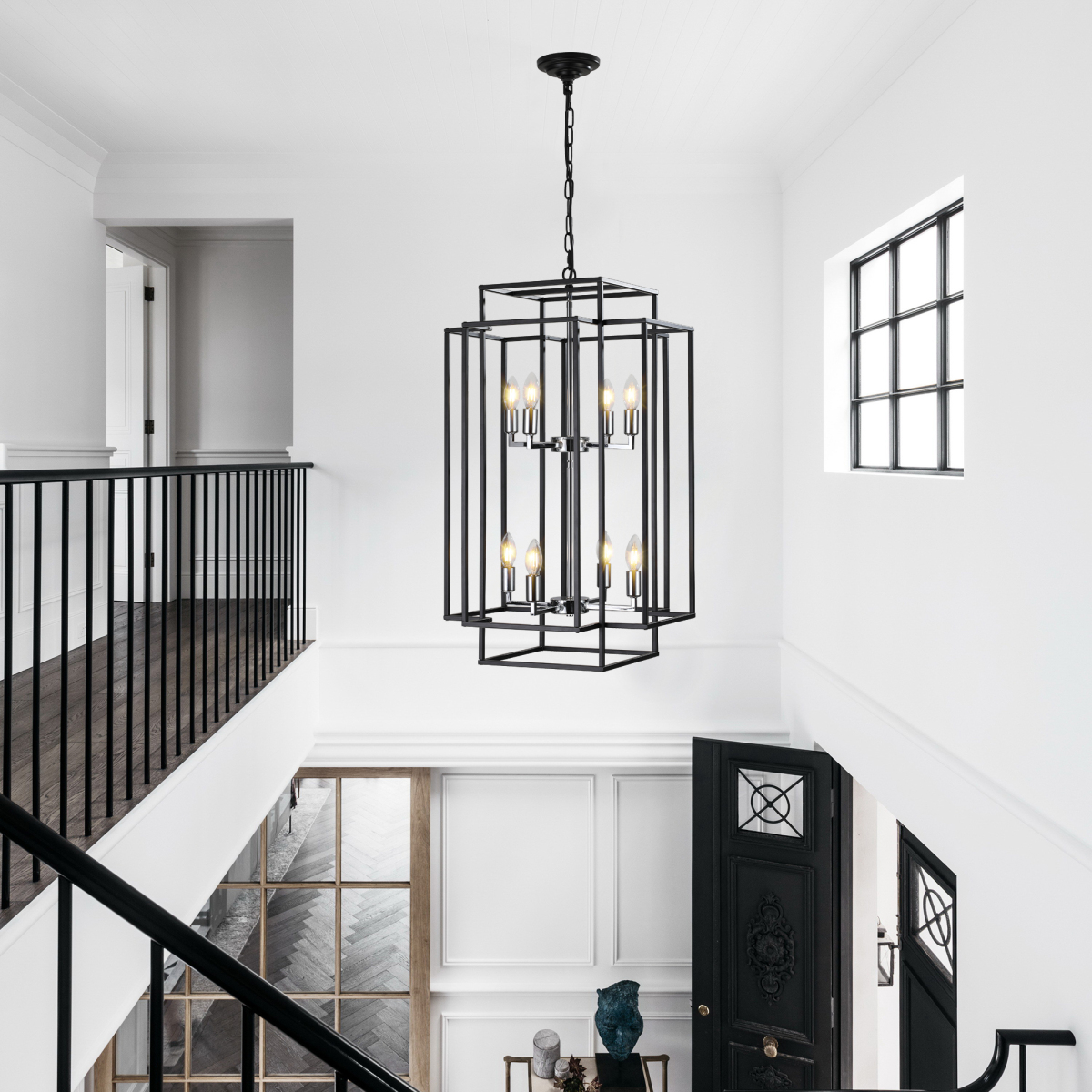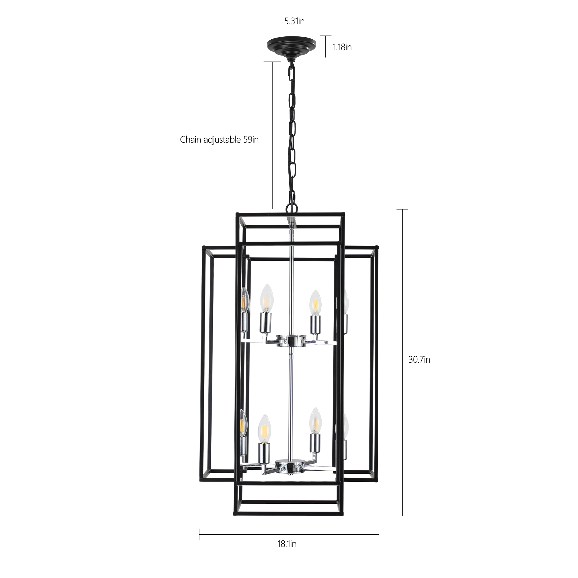 Adjustable Boom & Multi-Scene Applications: The foyer lighting fixtures length of the boom is 60 inches/150 cm. Consists of removable metal rods that allow you to easily adjust the height.Durable Metal Frame: This kitchen island pendant light adds protection to the bulb with a high quality black matte metal frame and heat resistant chrome pendant base.E12 Bulbs & Compatible Information: foyer pendant light comes with 8 x E12 lamp holder, Applicable to any E12 bulb, such as LED/CFL, incandescent or fluorescent (Bulb not included).Consists of removable metal rods that allow you to easily adjust the height. foyer chandelier for: living room, room, Hallway, dining room, kitchen island, farmhouse, foyer.