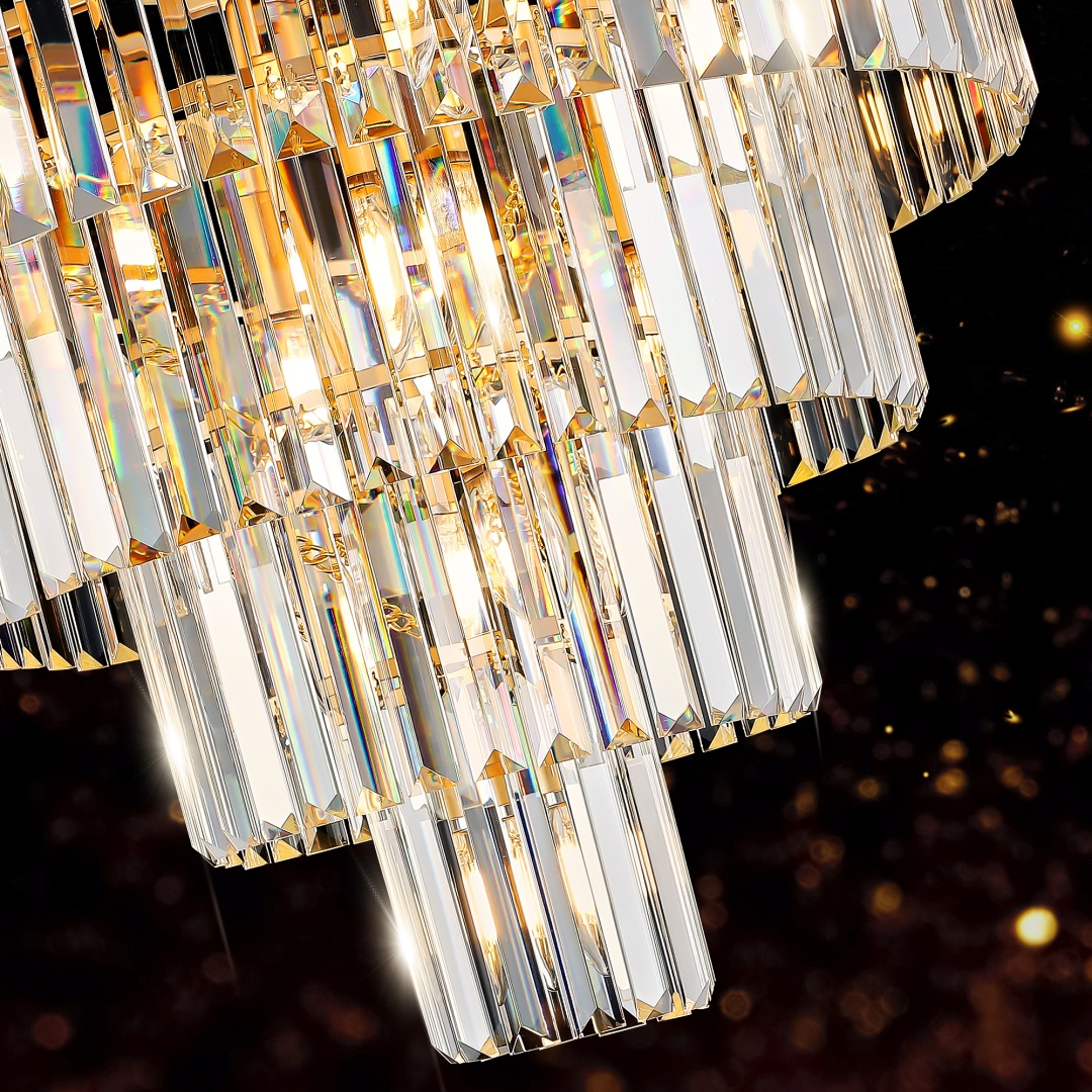 Elegant design: The gold metal finish and sleek design give the pendant light a modern and sophisticated look, making it a perfect addition to any contemporary interior.Adjustable Hanging Length: The pendant light can be adjusted to fit different ceiling heights, making it suitable for various layouts.High-quality craftsmanship: The chandelier is meticulously crafted with attention to detail, ensuring durability and longevity.User-friendly: The included user manual provides clear instructions for installation, ensuring a hassle-free experience for the users.