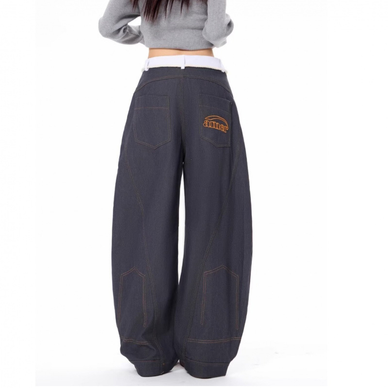 Same Retro Waist Strap Stitching Double Waist Machete Jeans