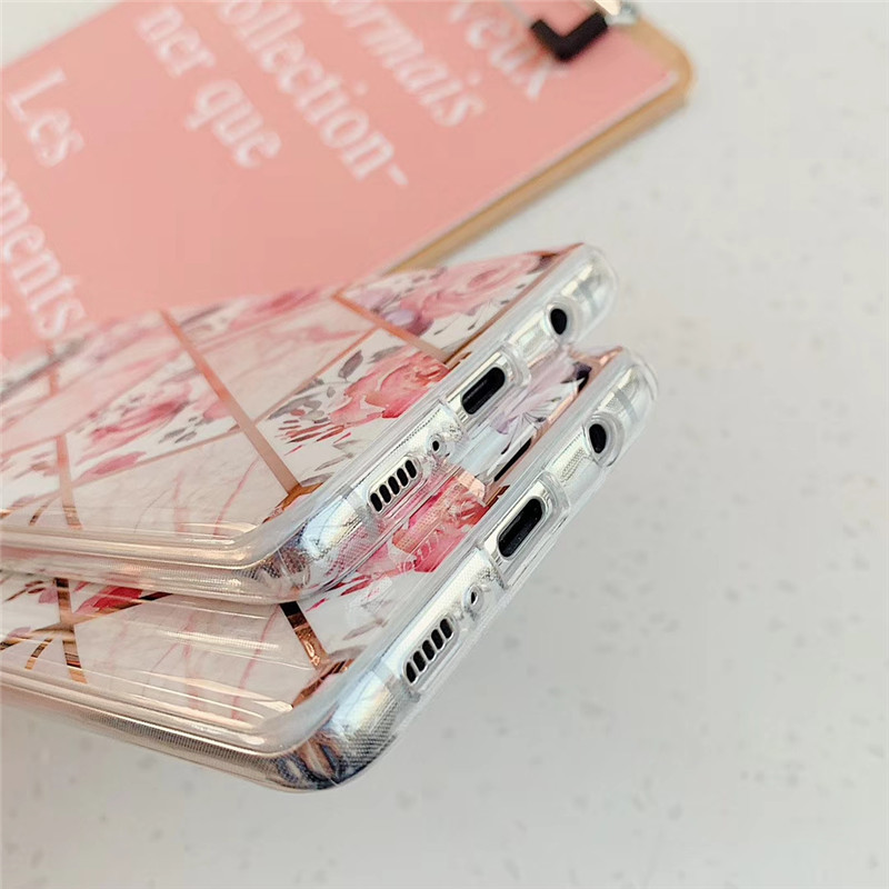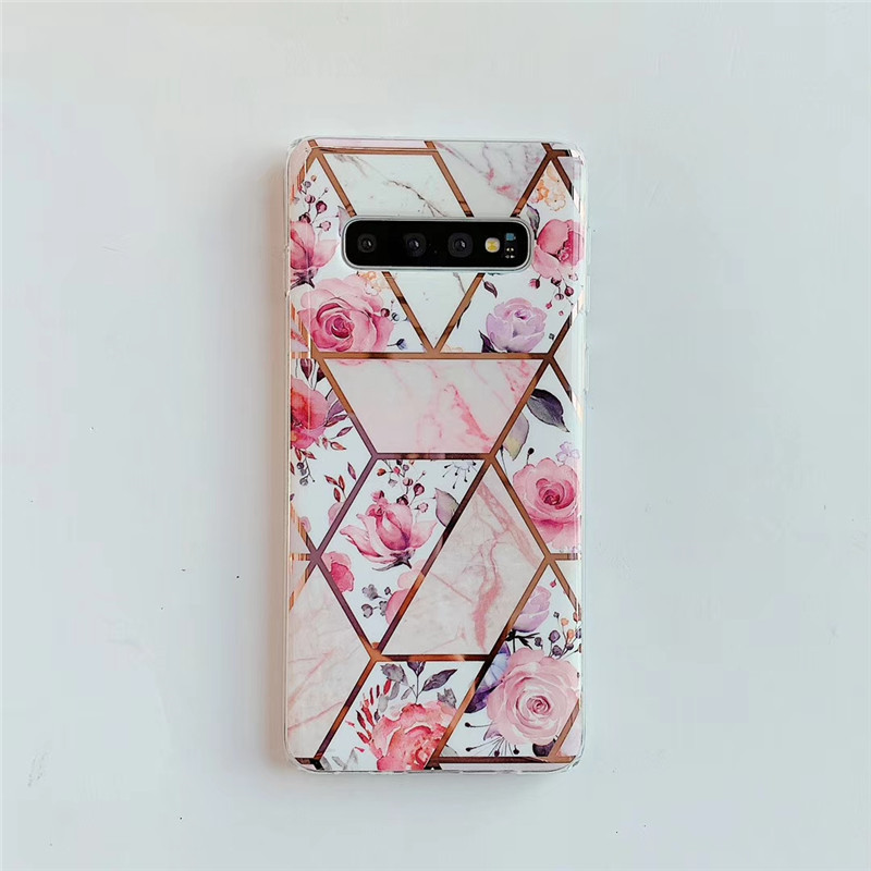Samsung s11 pink flower stitching geometric marble pattern suitable for Samsung A70 electroplating mobile phone case protective cover s9