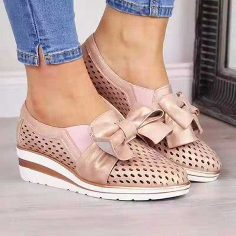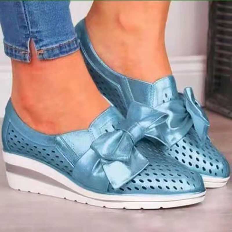 Popular elements: hollow, bow, shallow mouth, wedge heel, waterproof platform, candy color