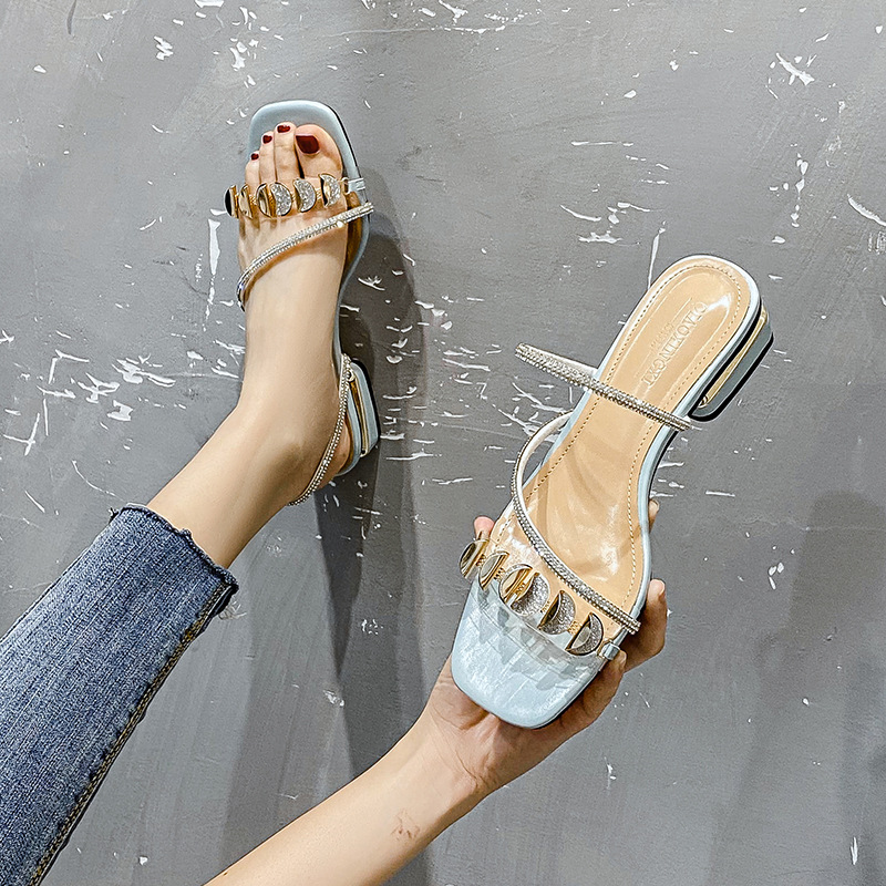 Sandals Women Rhinestone Mid Heel Large Size Slippers