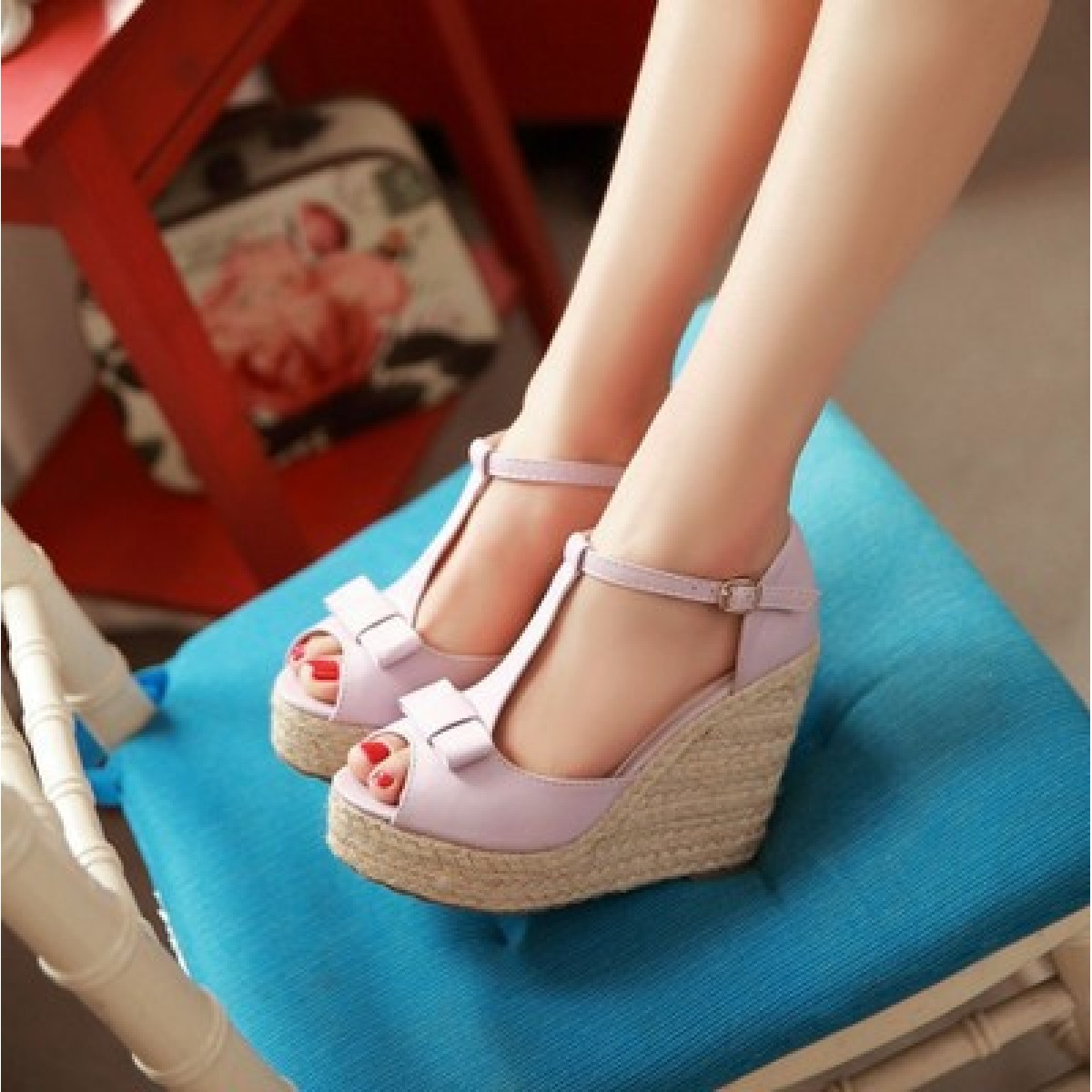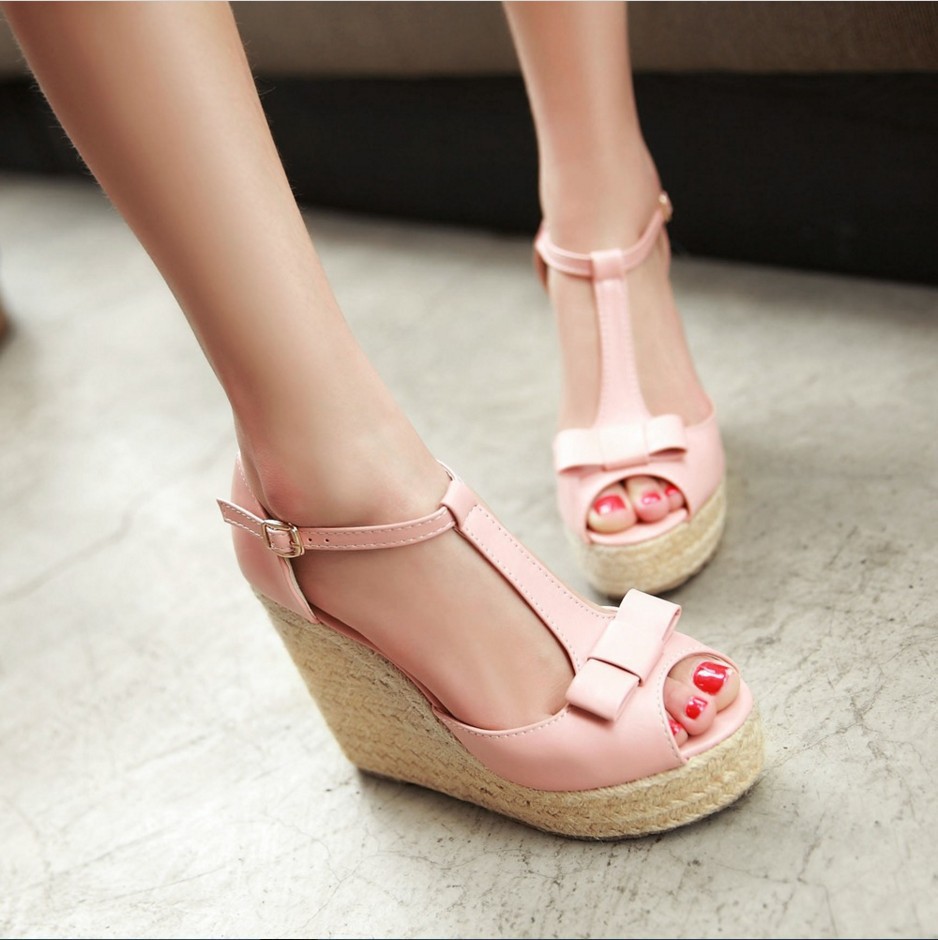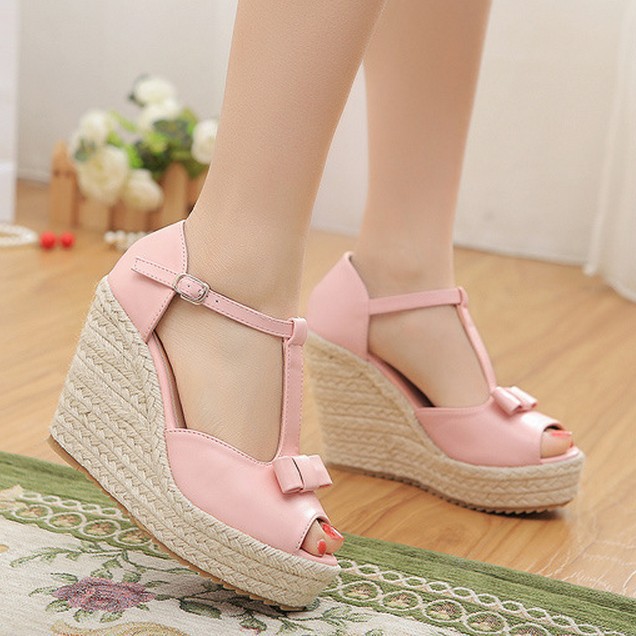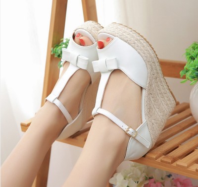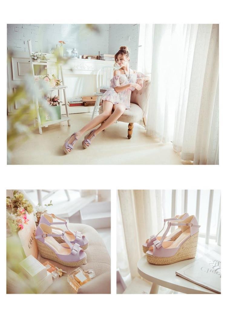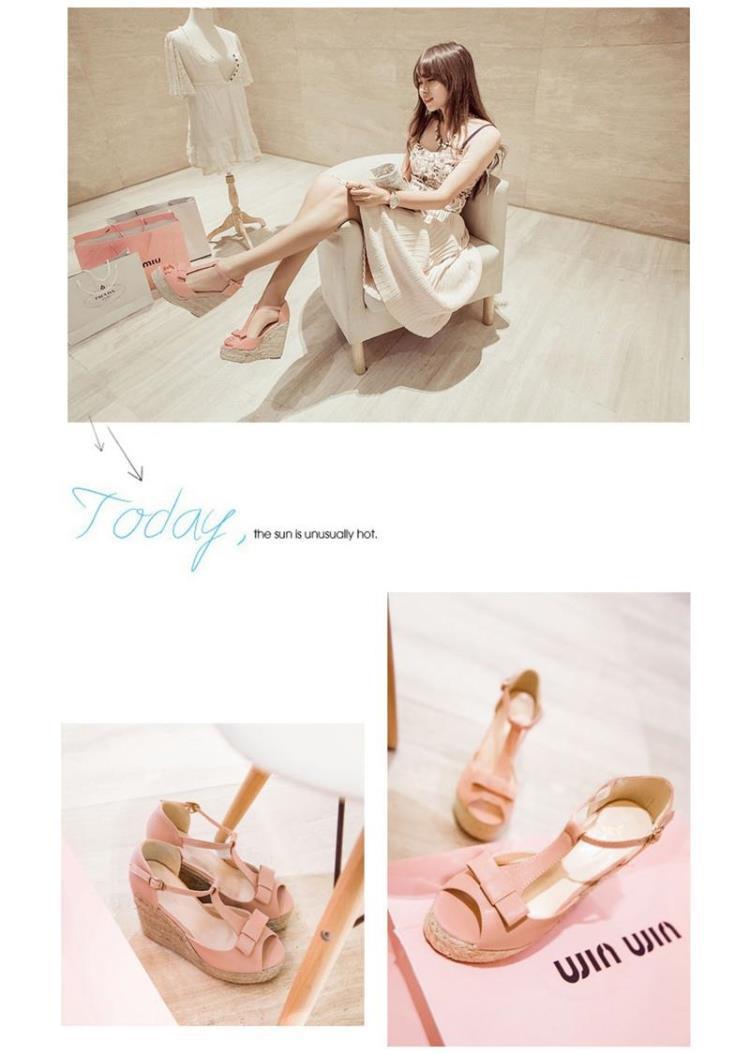 Popular elements: bow, slope heel, buckle, waterproof platform