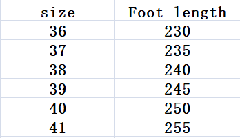 Size: 36, 37, 38, 39, 40, 41