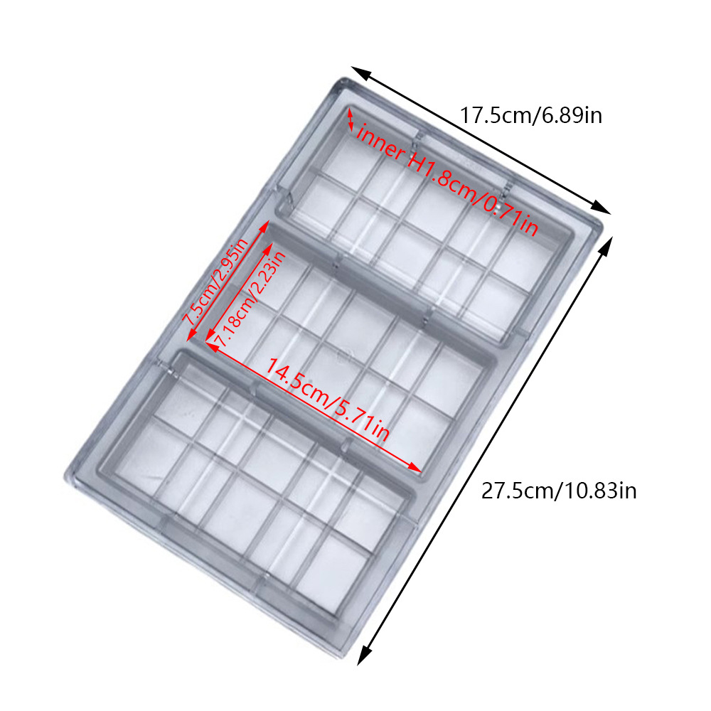 Product information:Product: chocolate mold Material: behavior carbonate Color: transparent Mold size: 27.5x17.5x2.5cm