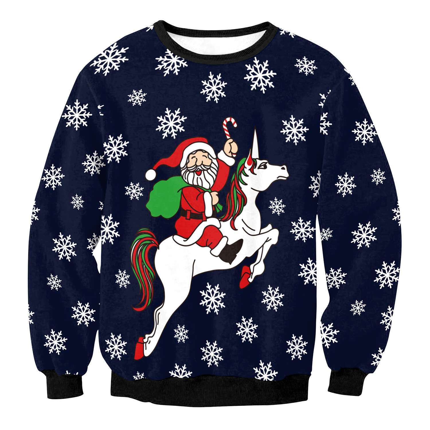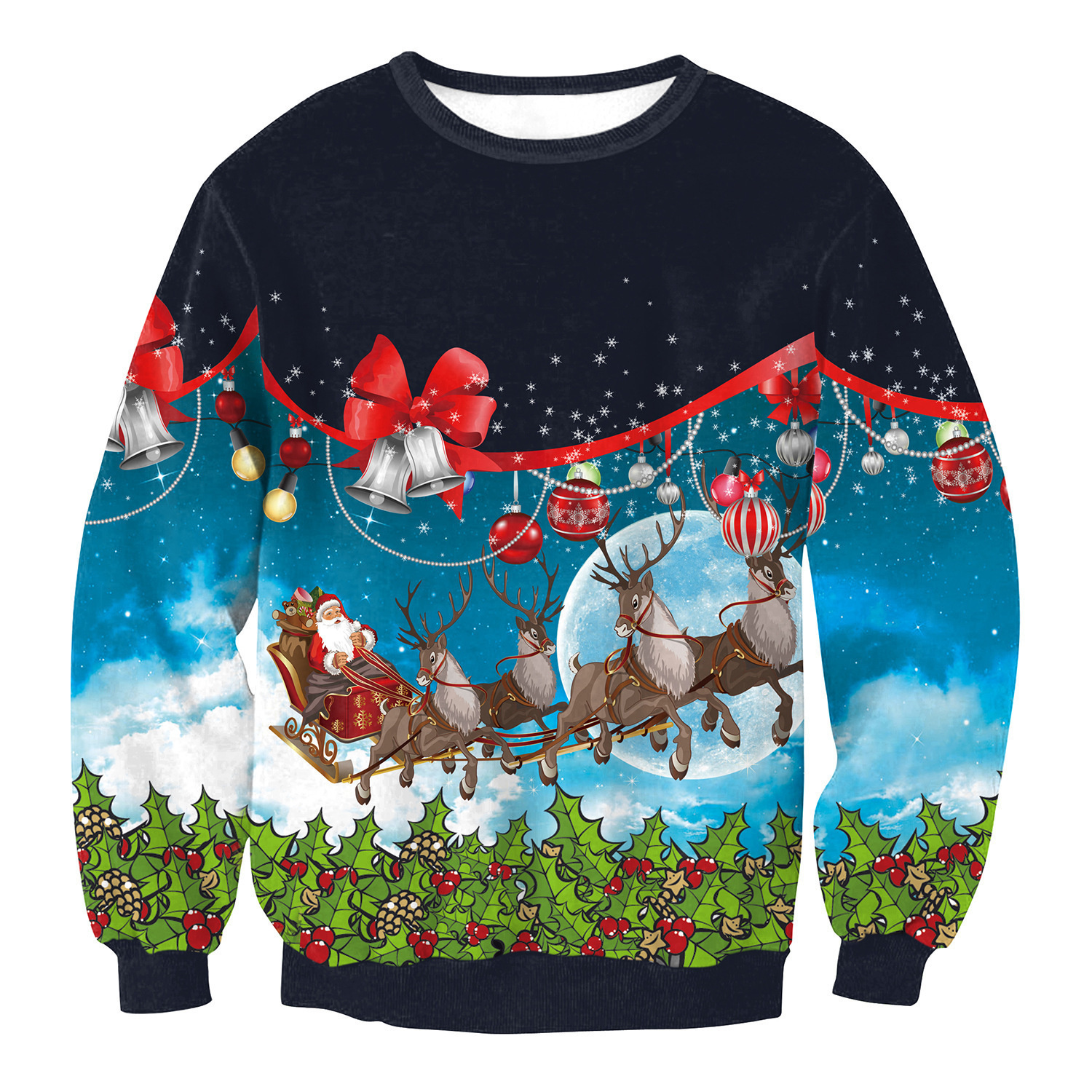 Santa Claus Elk Long Sleeved Round Neck Loose Top
