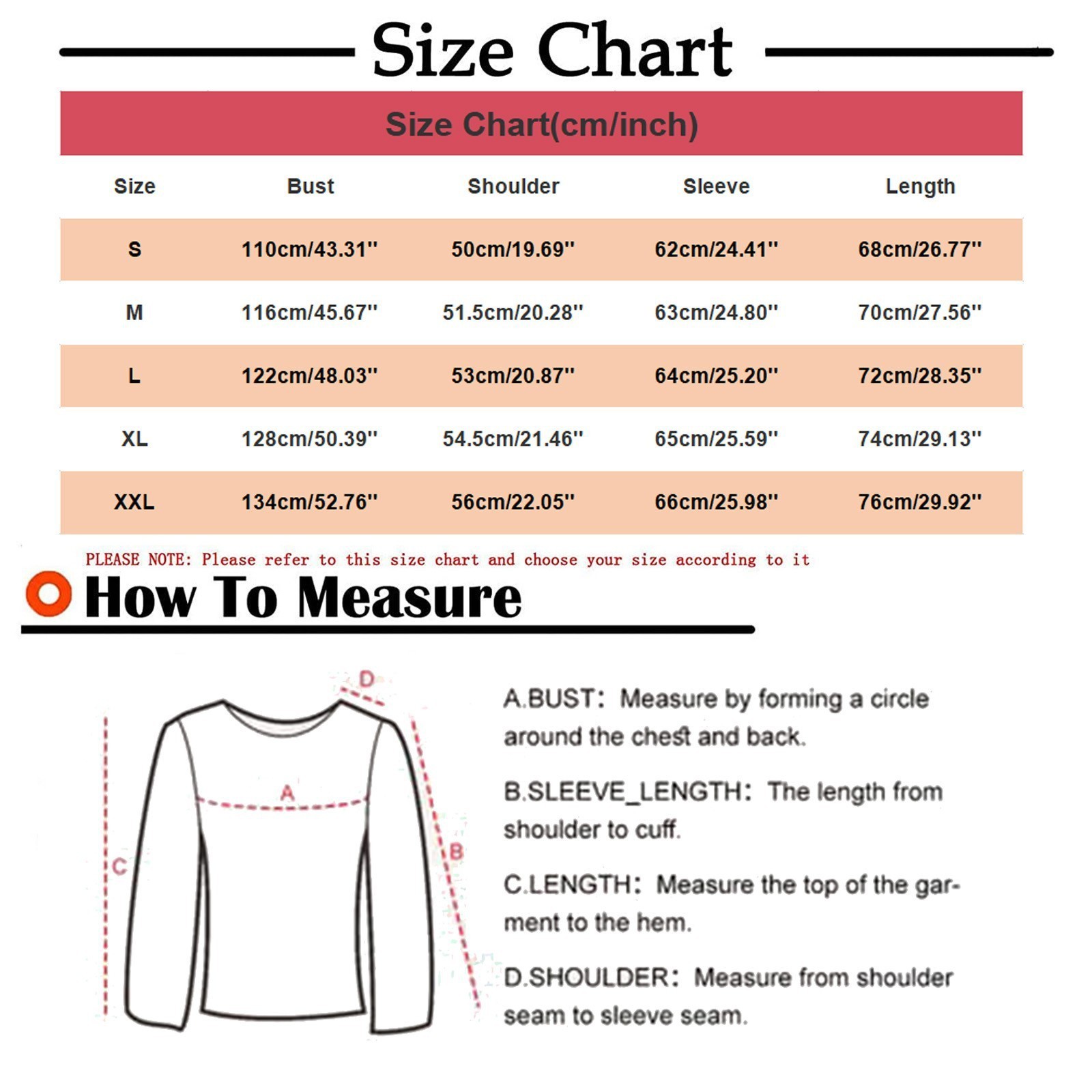 Note: 1. Asian sizes are 1 to 2 sizes smaller than European and American people. Choose the larger size if your size between two sizes. Please allow 2-3cm differences due to manual measurement. 2. Please check the size chart carefully before you buy the item, if you don't know how to choose size, please contact our customer service. 3.As you know, the different computers display colors differently, the color of the actual item may vary slightly from the following images.