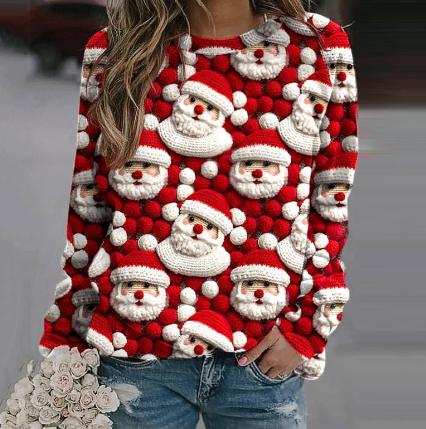 Santa Claus Print Sweater Top