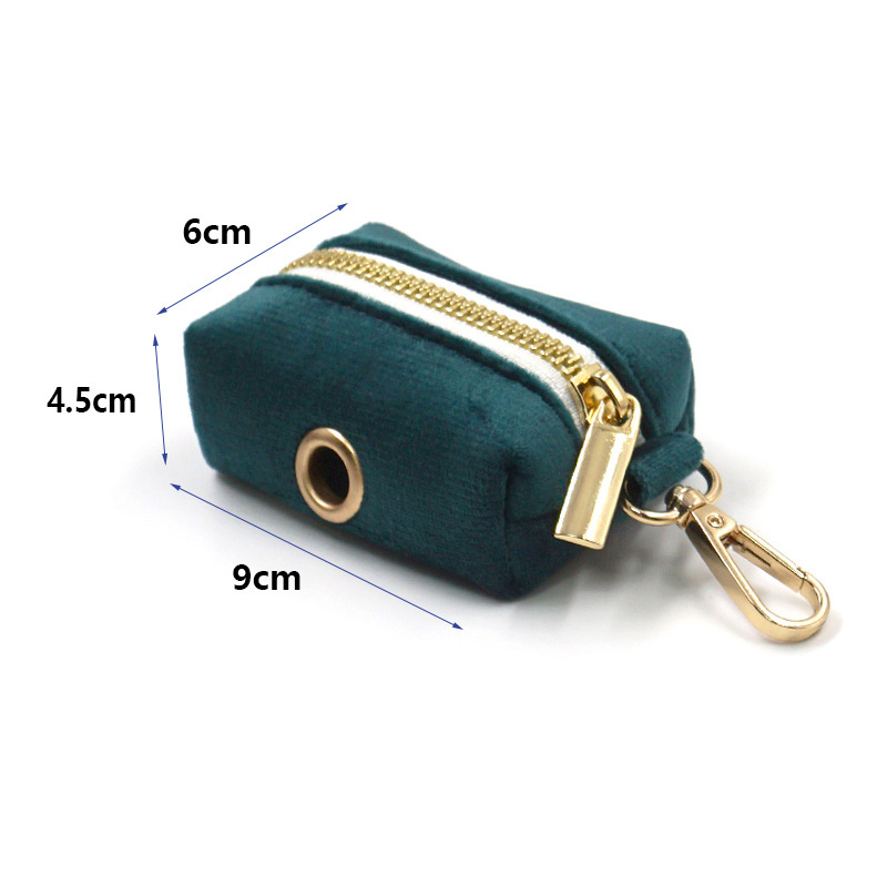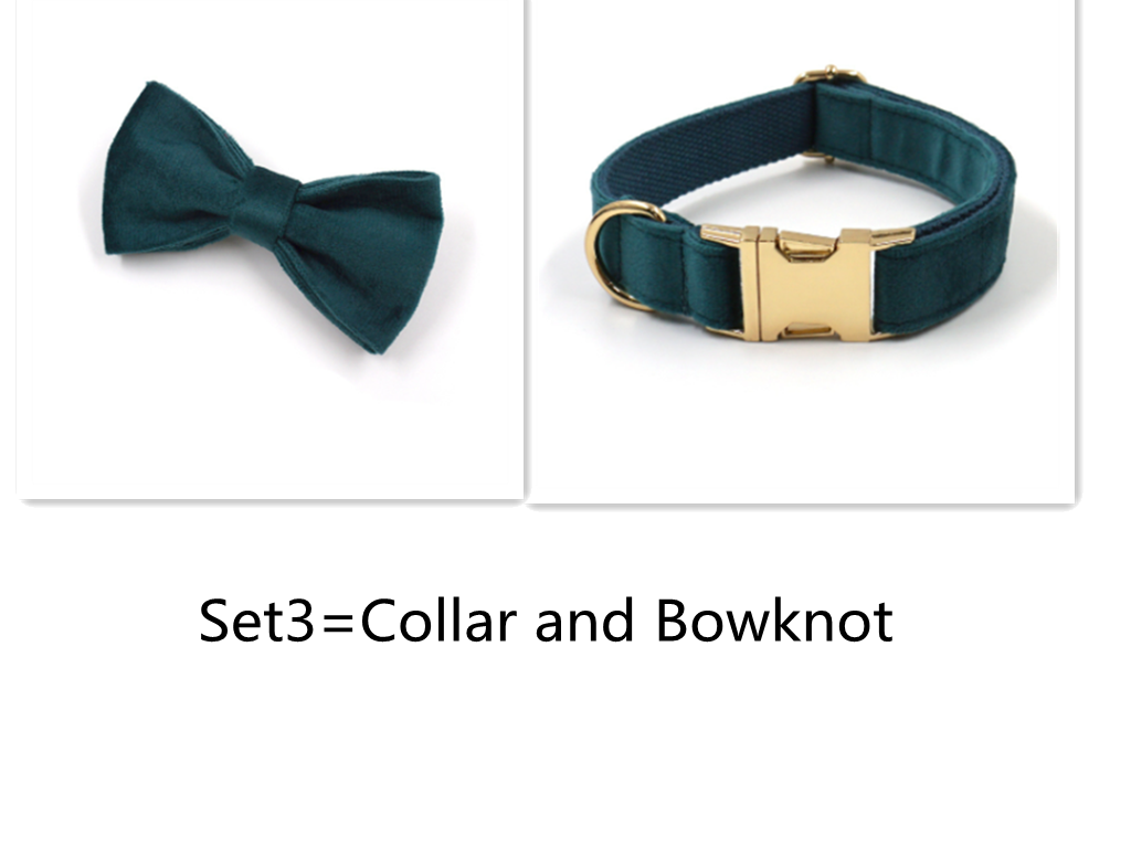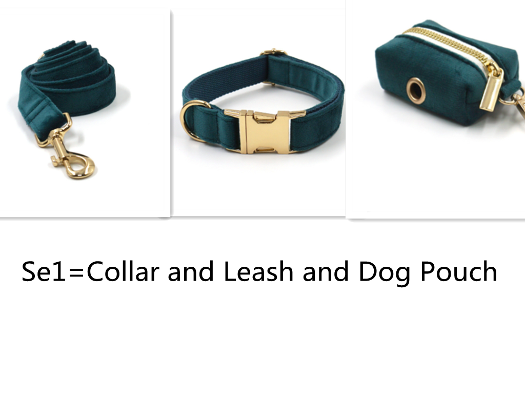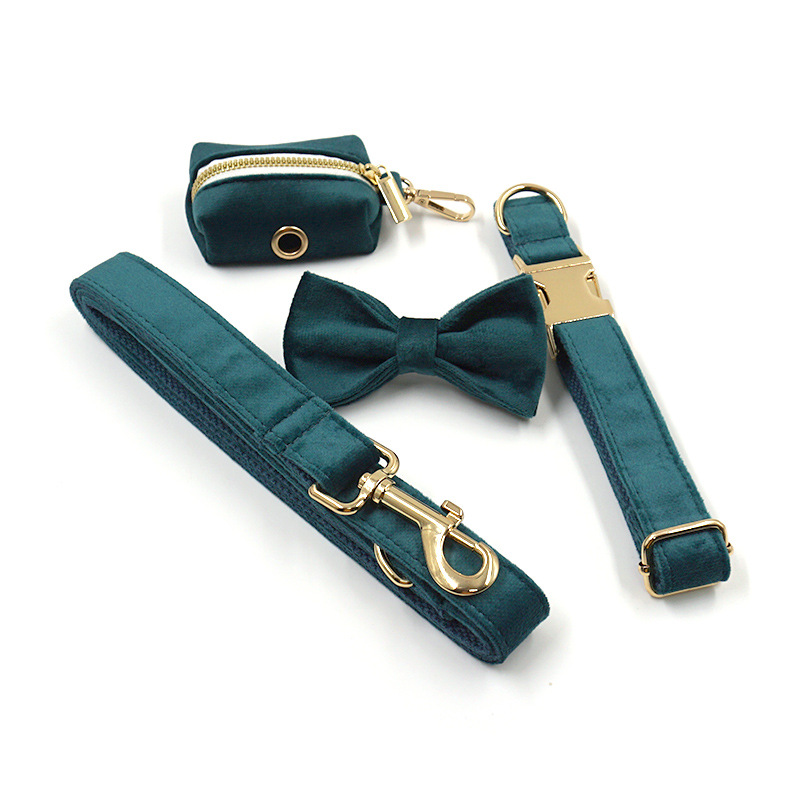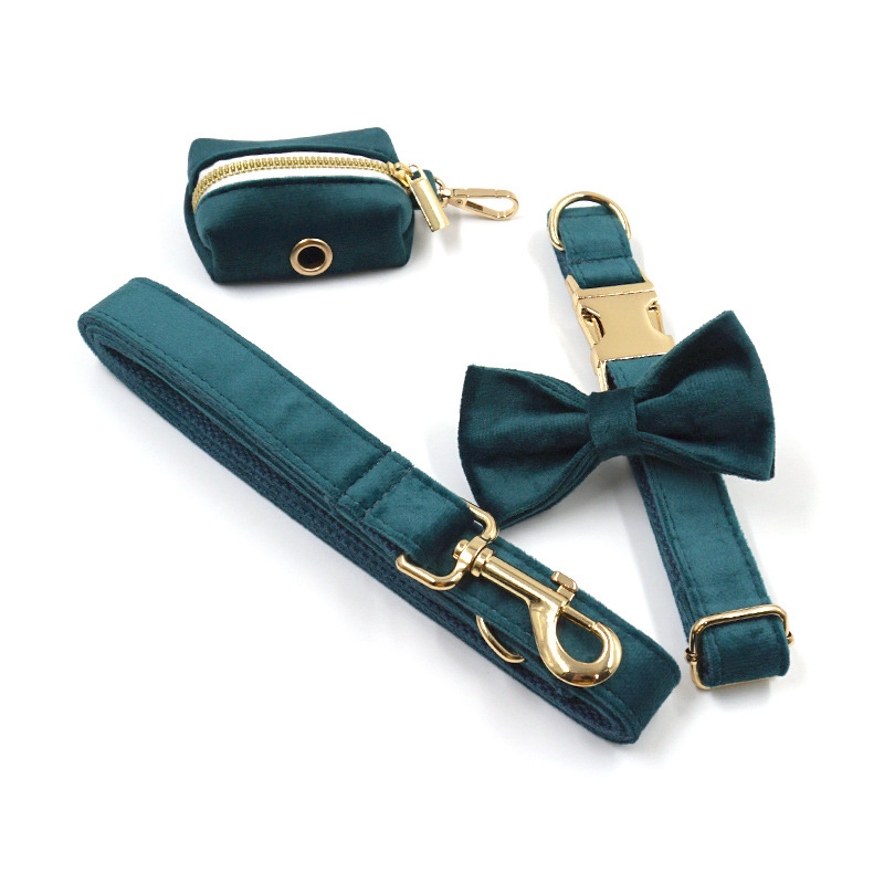 Color: gold buckle gem green velvet pet collar, gold buckle gem green velvet pet leash, gem green velvet bow, gold buckle gem green velvet dog poo bag