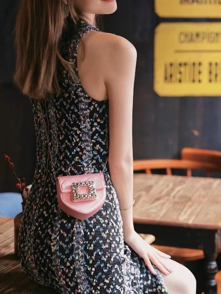 Product information :Color: black, pink, white, redMaterial: silkPopular elements: diamondsLining material: polyesterPacking list: